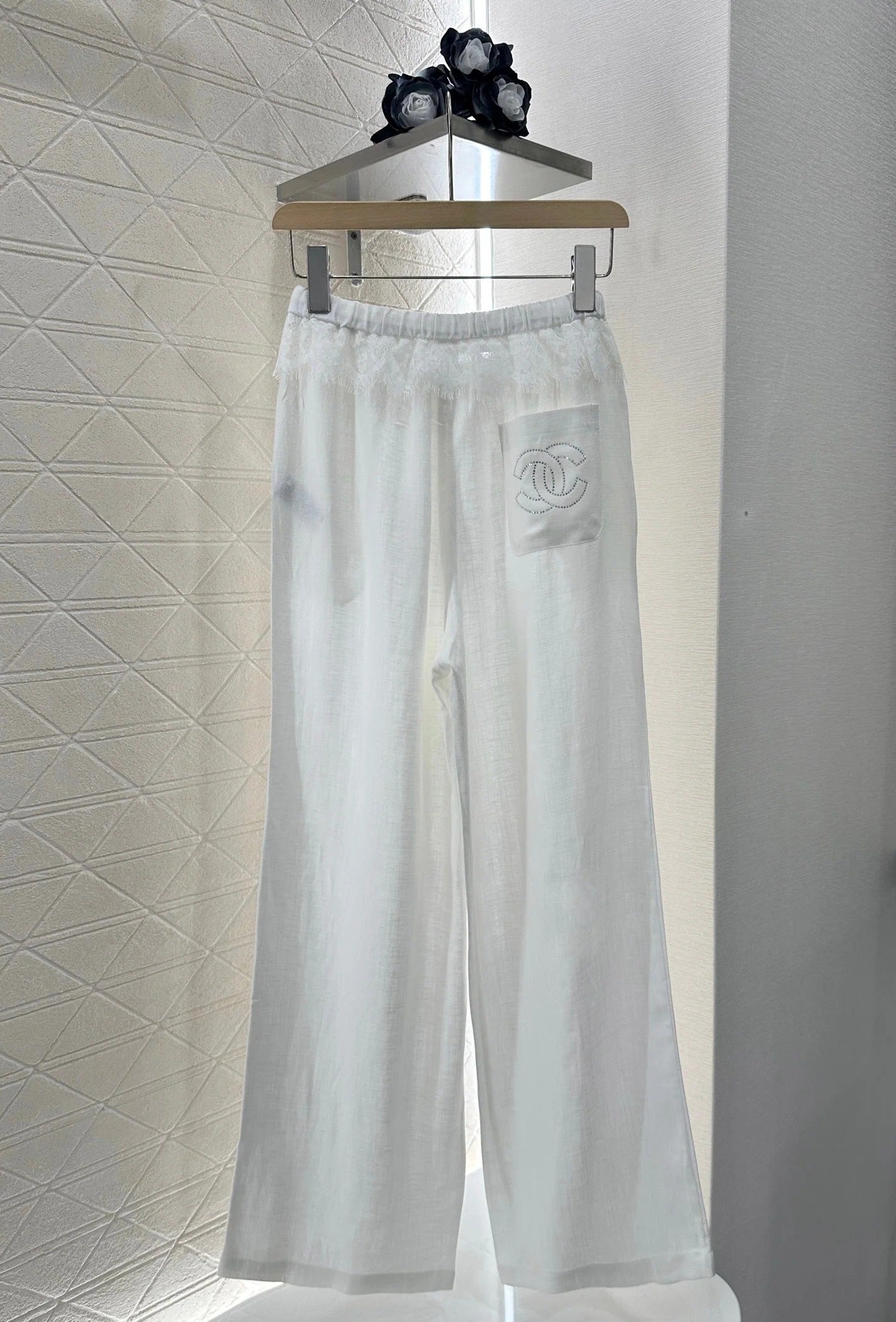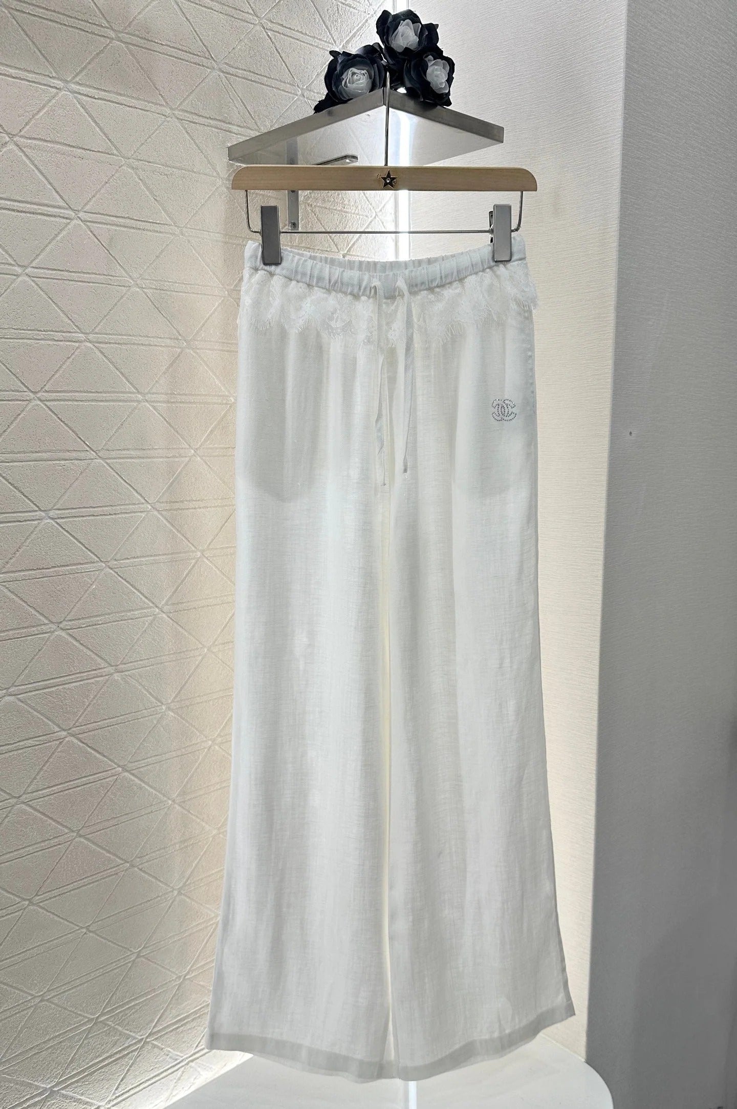 CHANEL WHITE WIDE-LEG DRAWSTRING SOFT FABRIC PANTS
