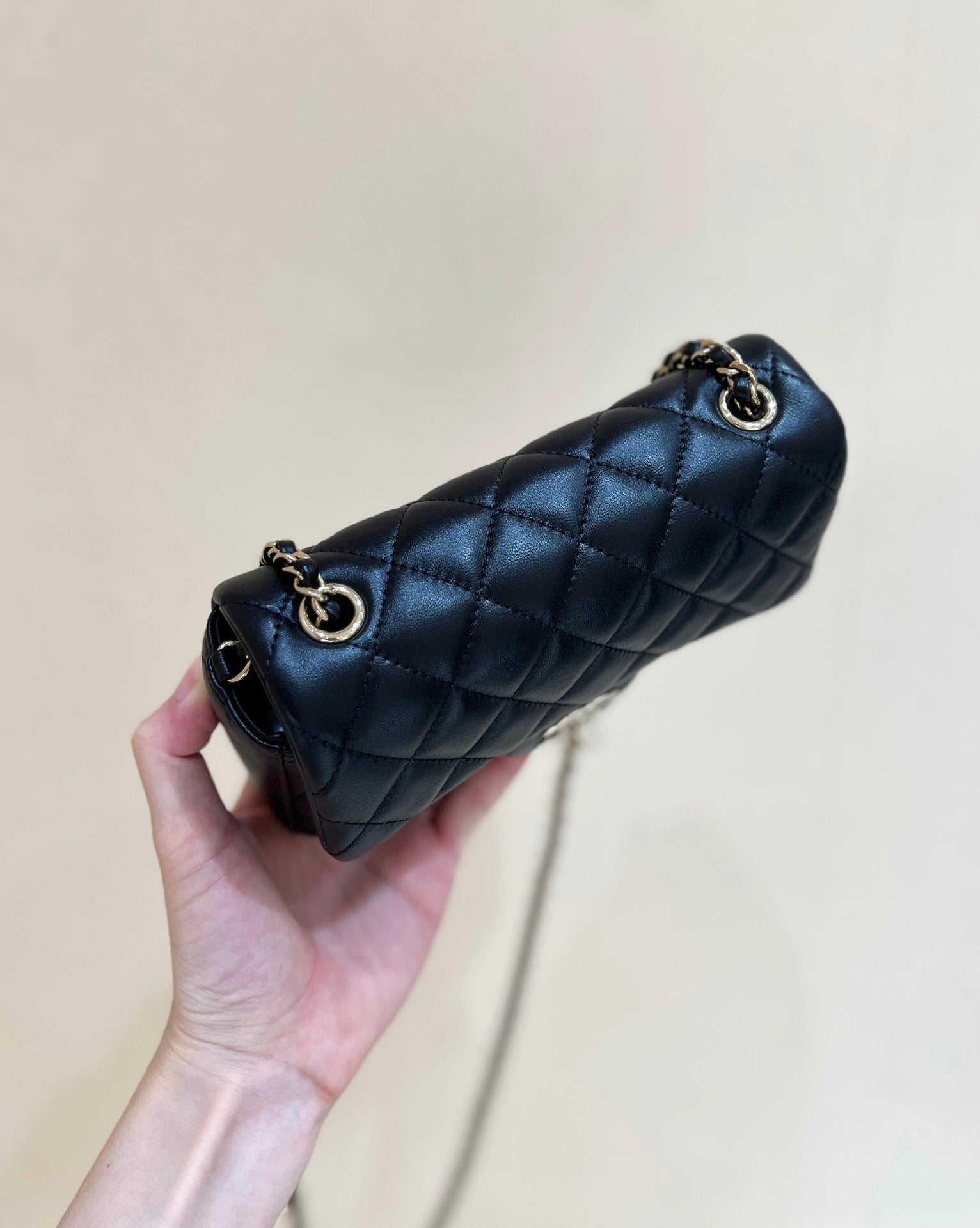 CC 24K Mini Flap Bag 18cm Black Lambskin Gold Hardware