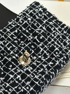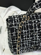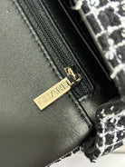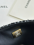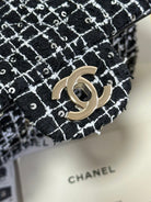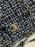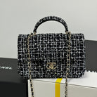 MINI FLAP BAG 20 ATTACHED SAQUINS IN BLACK MIX WHITE TWEED GOLD HARDWARE
