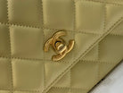 SMALL FLAP BAG 24CM TOP HANDLE LIME LAMBSKIN GOLD HARDWARE