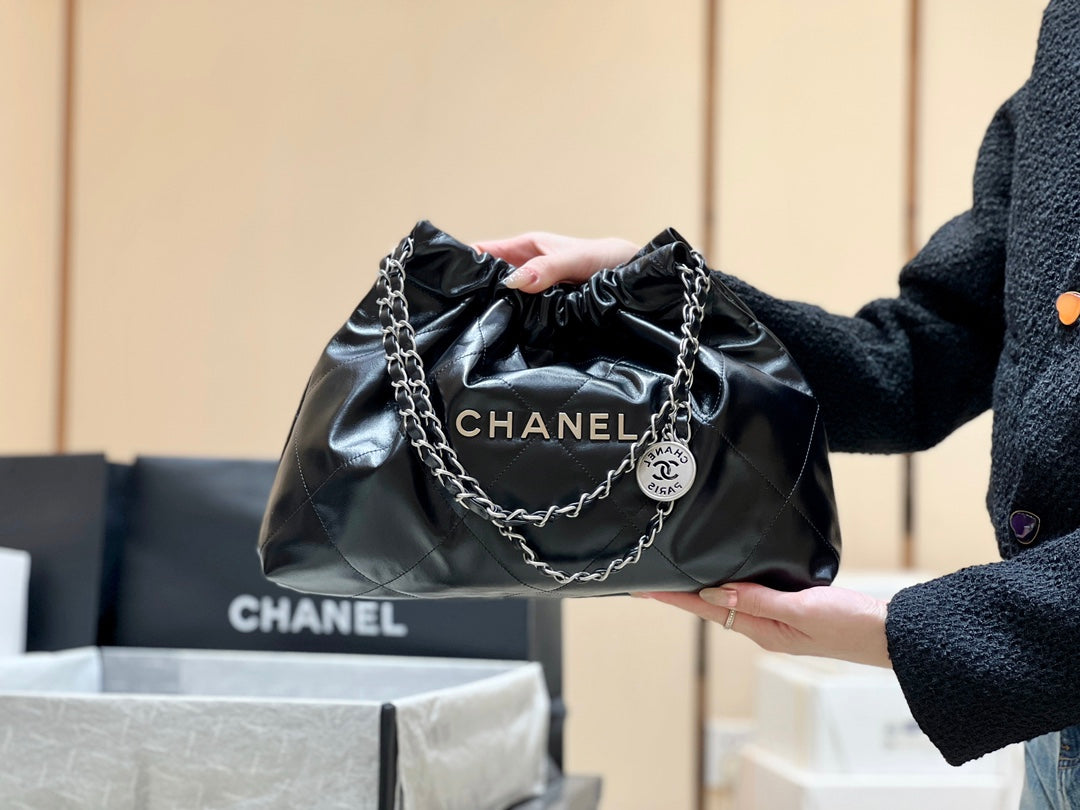 CC 19 HOBO BAG 43CM BLACK GOATSKIN SILVER HARDWARE