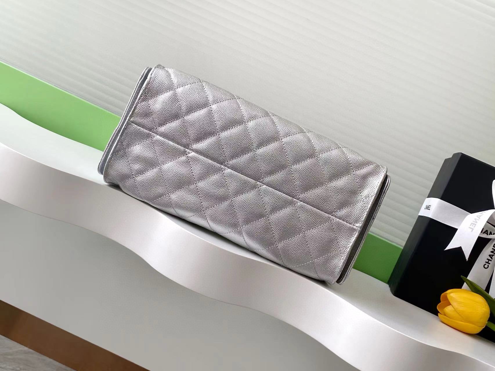 CC 25C Hobo Bags 30cm Silver Metallic Grained Calfskin