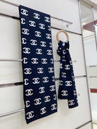 SCARF 190 CM IN NAVY BLUE CASHMERE WITH SILVER LOGO 401171