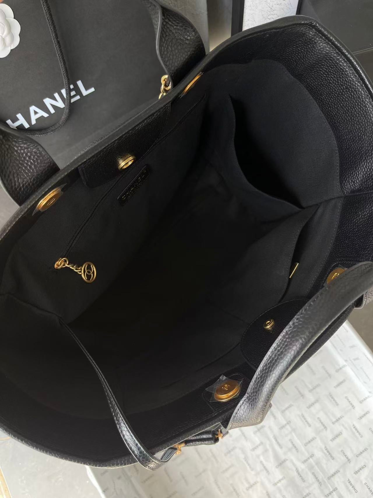 CC 2025 Deauville Tote Bag Black Leather GHW