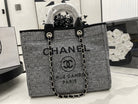 CC Deauville Tweed Bag Black Leather Silver Hardware 8
