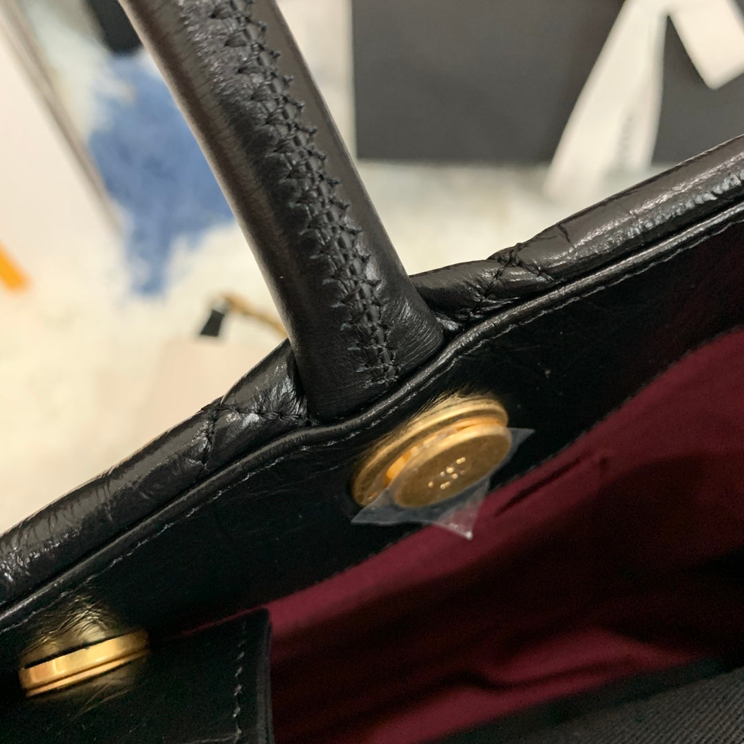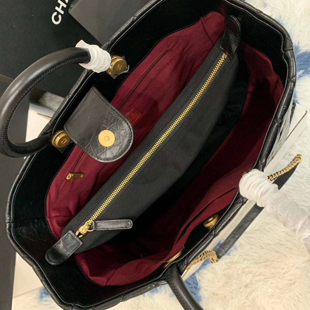cc shopping bag 38cm black quilted aged calfskin ghw