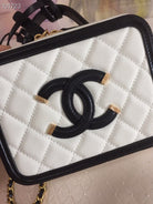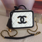 CC Filigree Vanity Case Bag Black White Quilted Caviar Leather