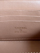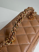 SMALL VANITY CASE 17 WITH HANDLE IN RUSSET BROWN CALFSKIN GOLD METAL CHAIN
