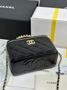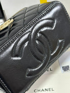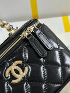 VANITY CASE 18 IN BLACK SHINY LAMBSKIN WITH PEARL HANDLE