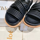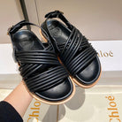 CHLOÉ CROSS STRAP SANDAL IN BLACK RUBBER WITH GOLD HARDWARE