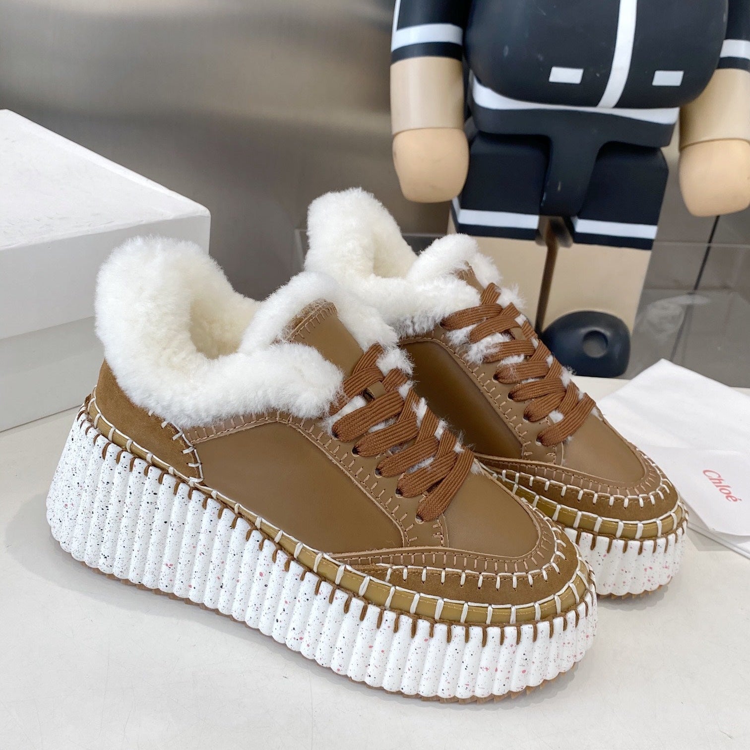 Chloe Nama Sneaker Brown Cowhide Wool 531606