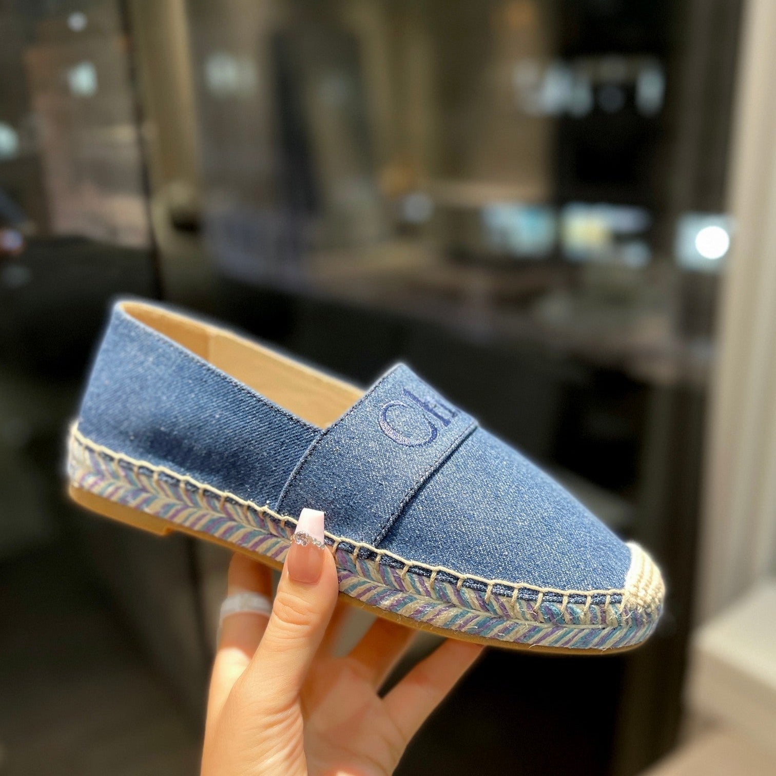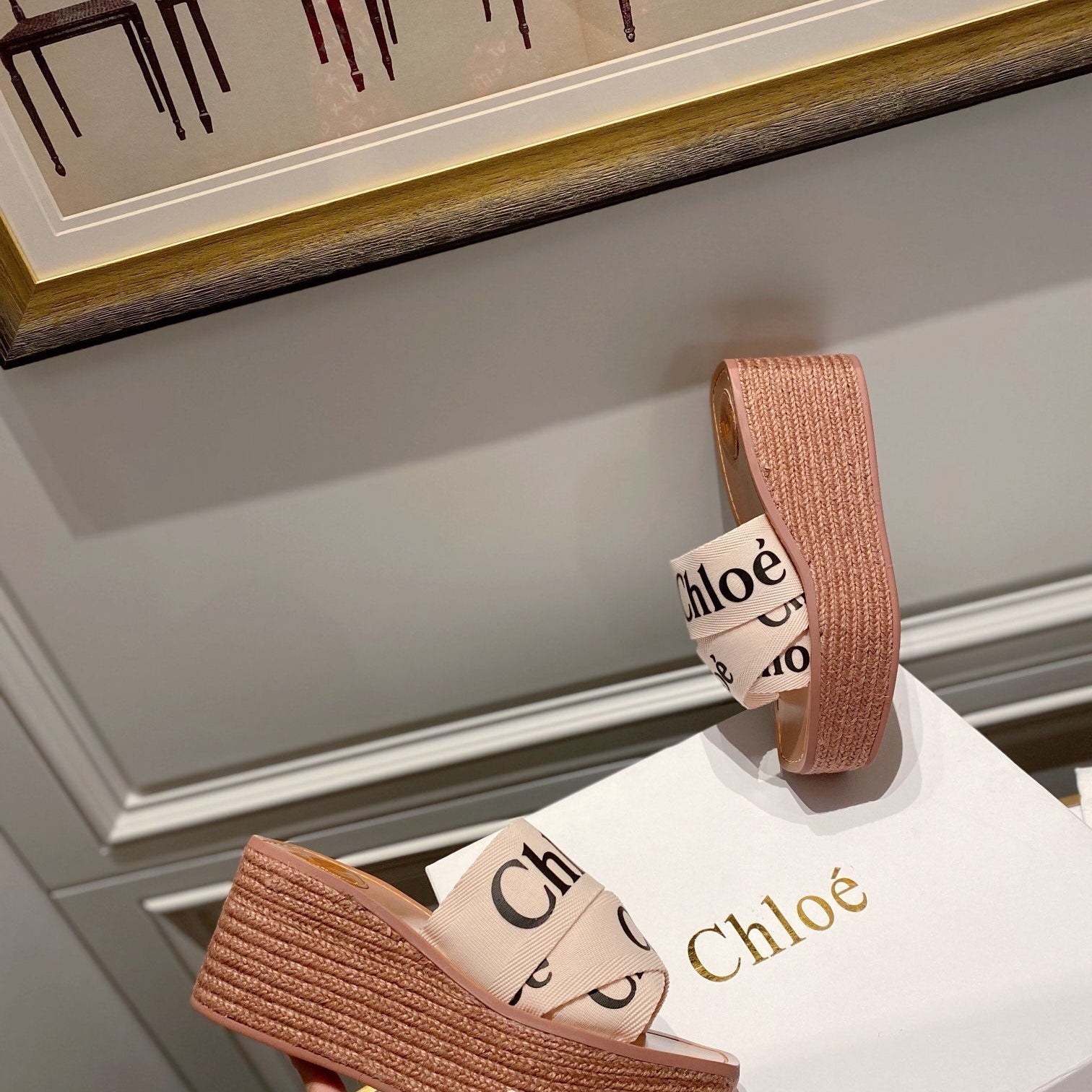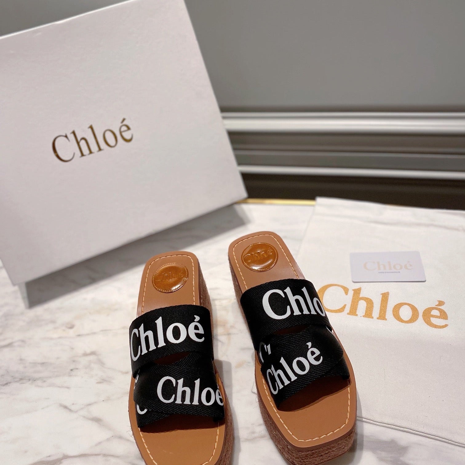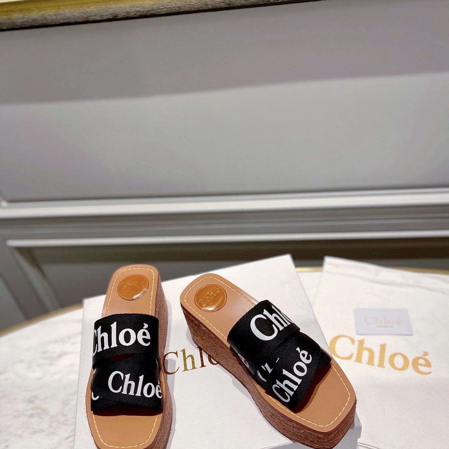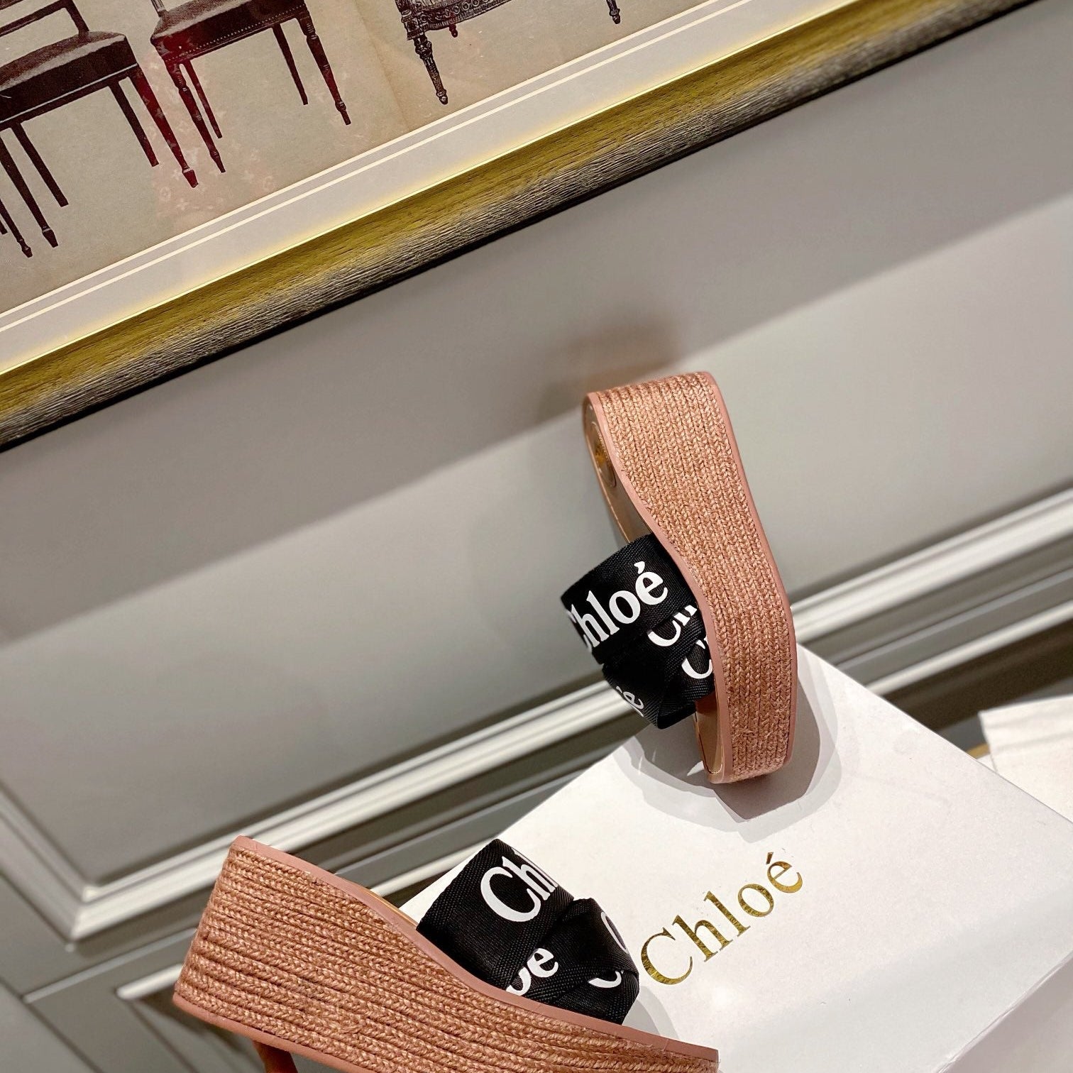 CHLOÉ SLIDE MULE IN LIGHT BLUE DENIM AND BROWN CALFSKIN GOLD HARDWARE