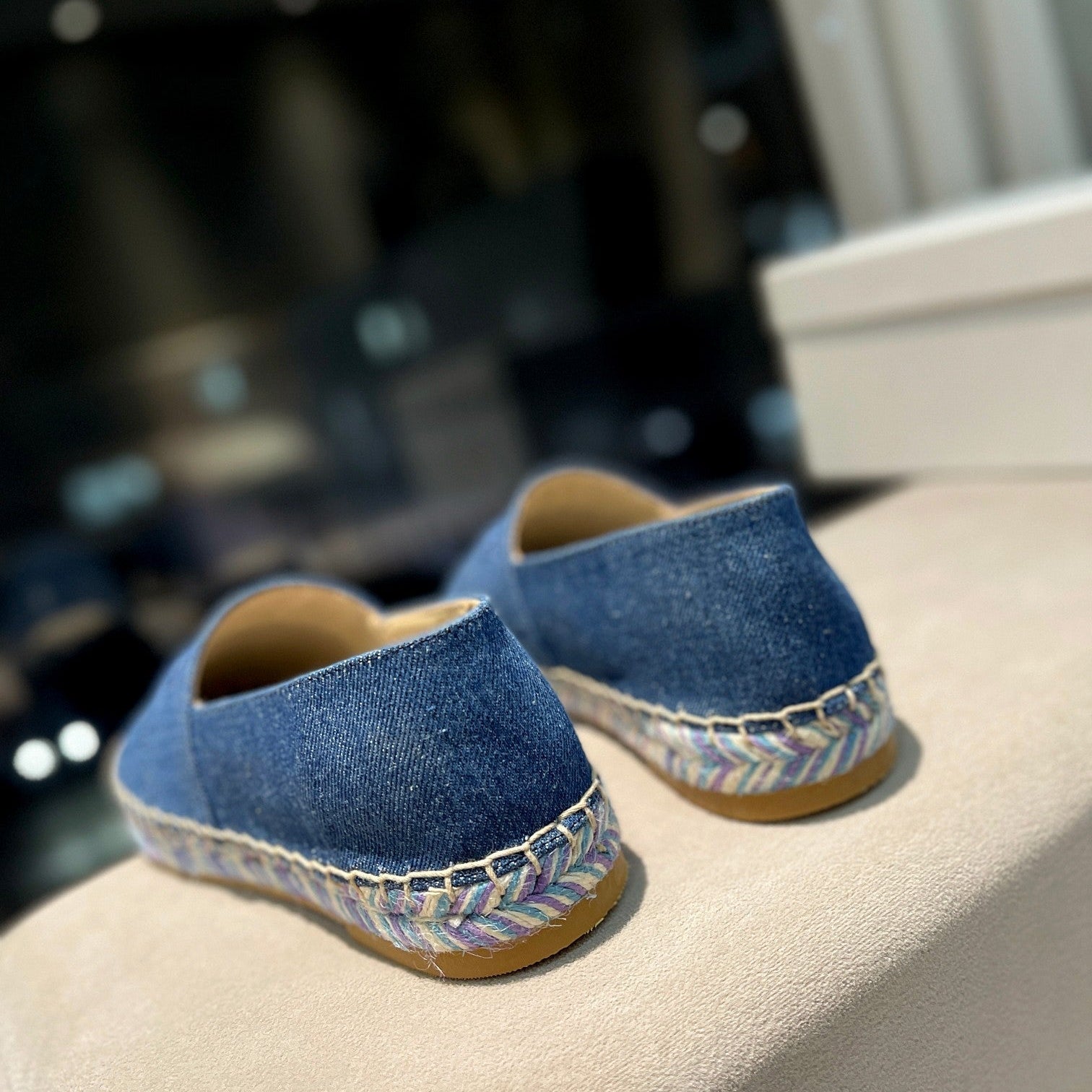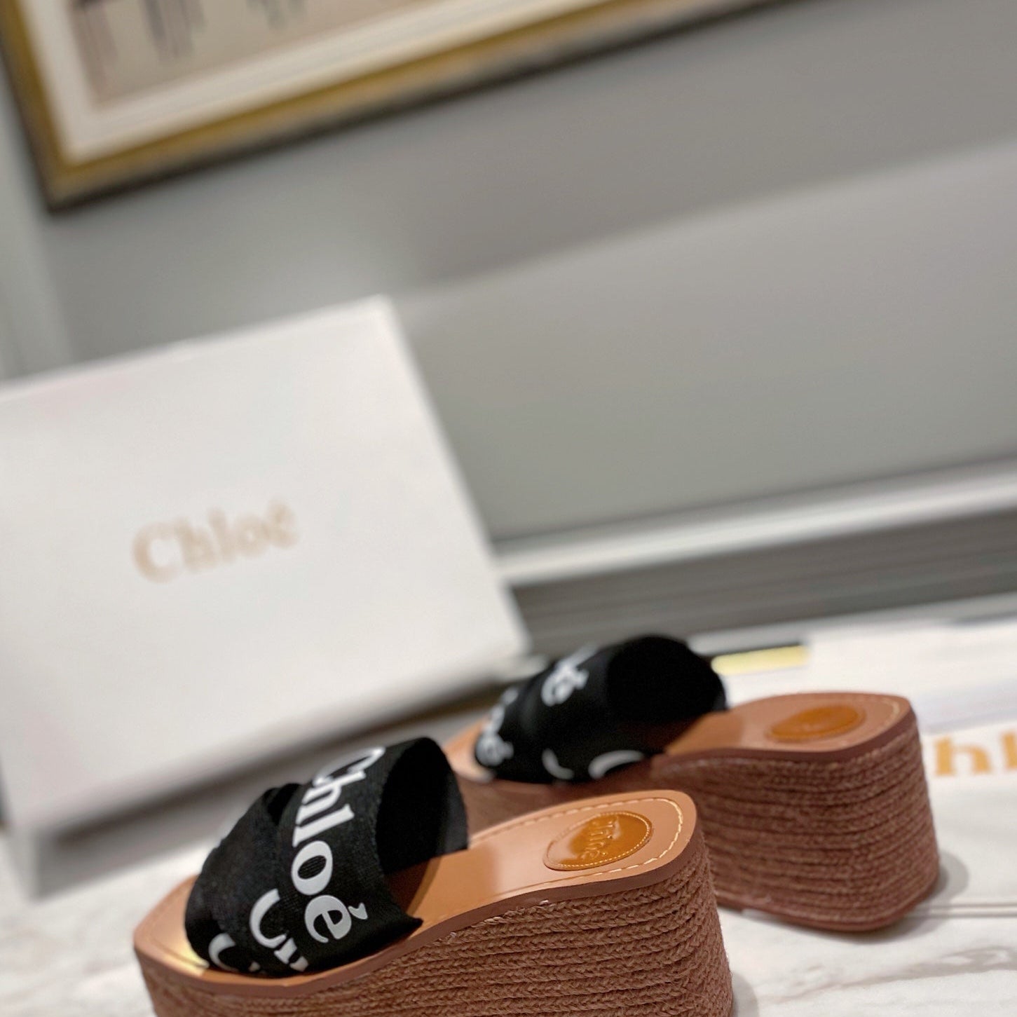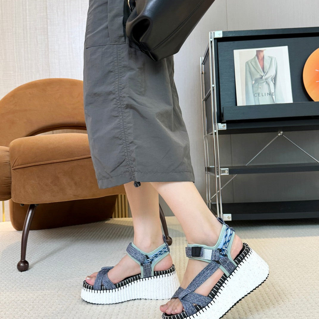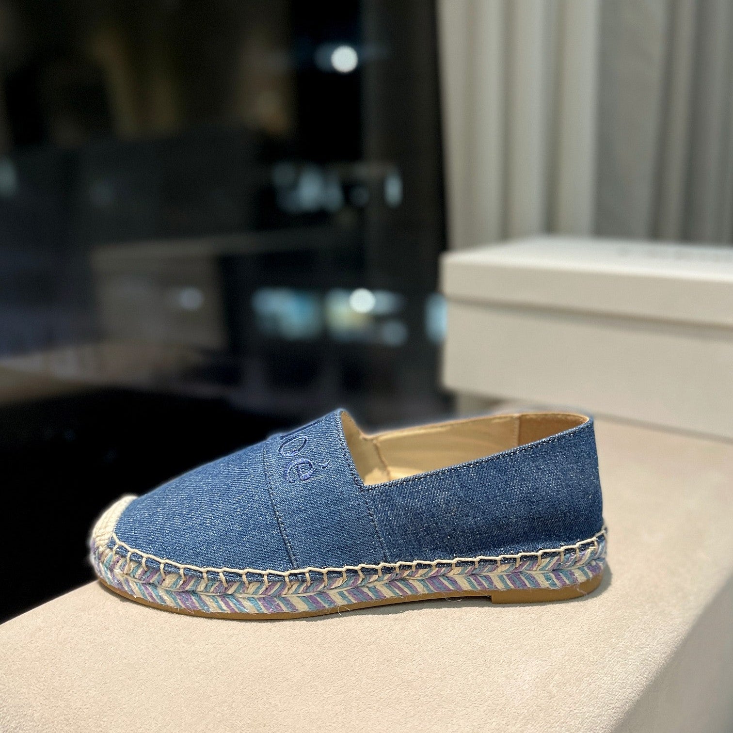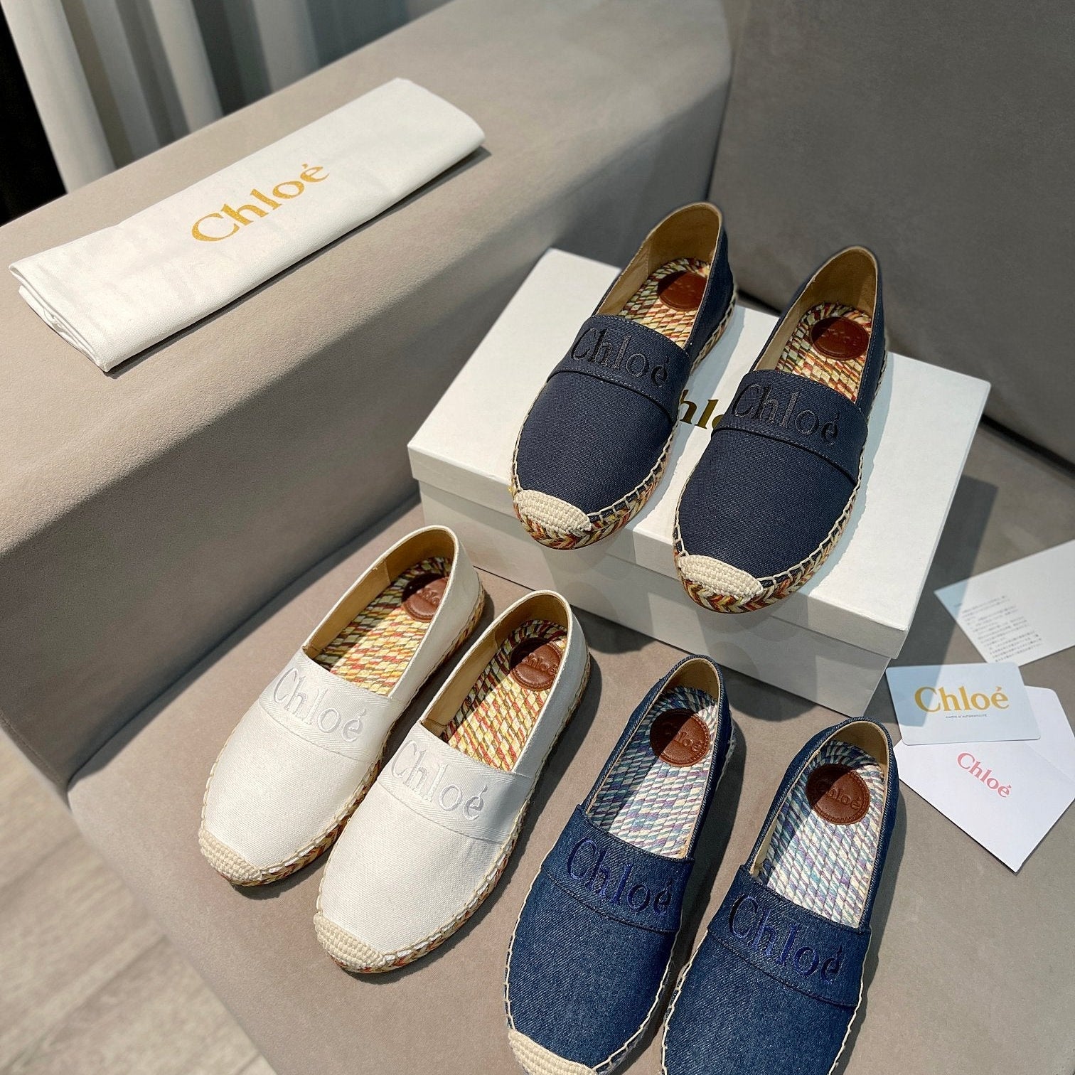 CHLOÉ SLIDE MULE IN LIGHT BLUE DENIM AND BROWN CALFSKIN GOLD HARDWARE