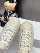 CHLOÉ TELMA LACE-UP SNEAKER IN CREAM BEIGE LAMBSKIN AND RAFFIA