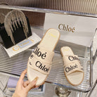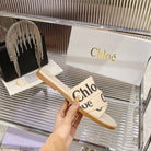CHLOÉ WOODY SLIPPER IN BEIGE MIX BLACK CANVAS