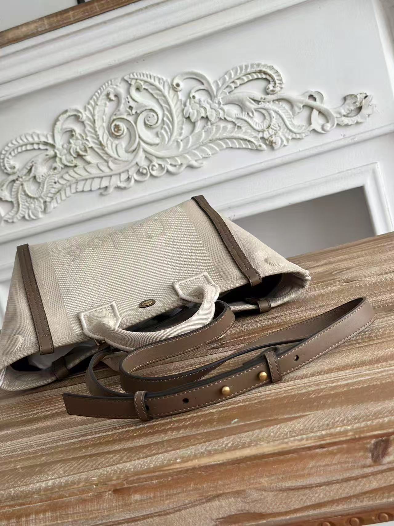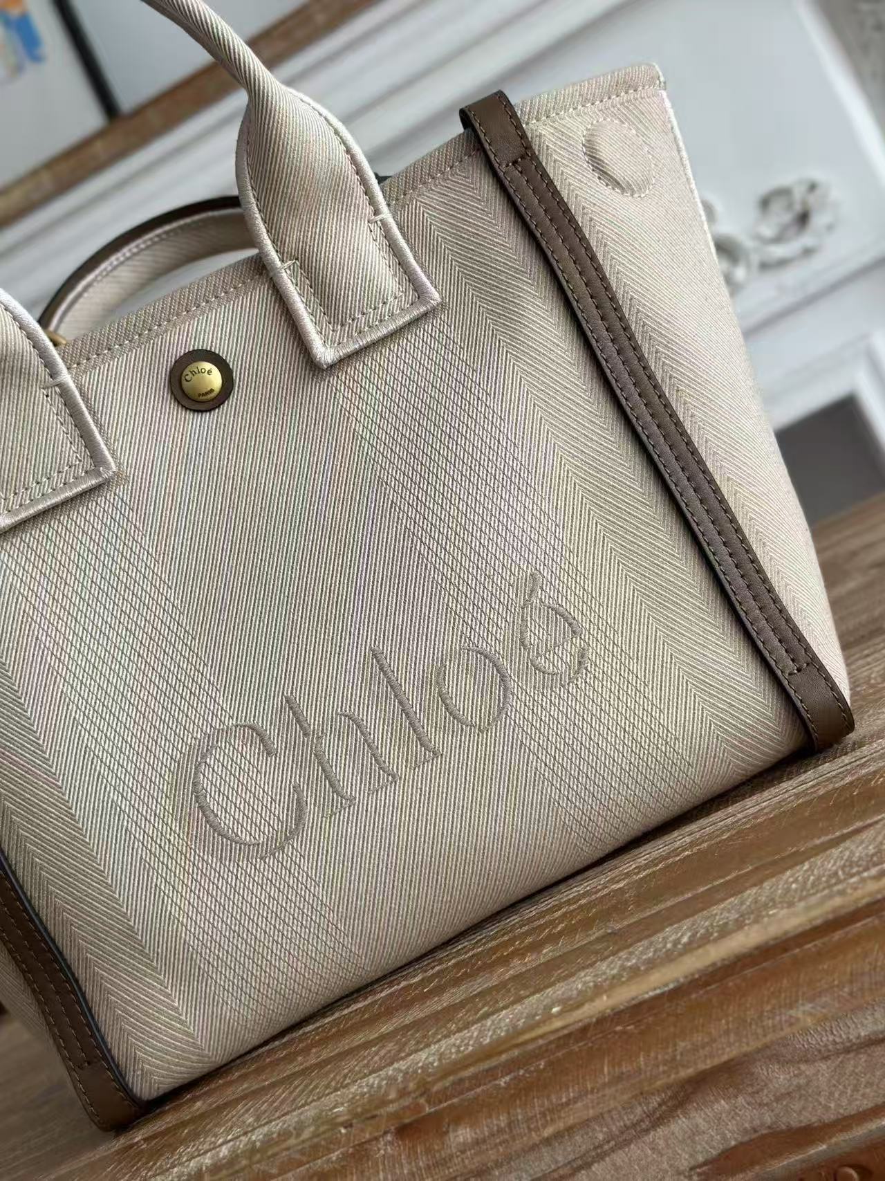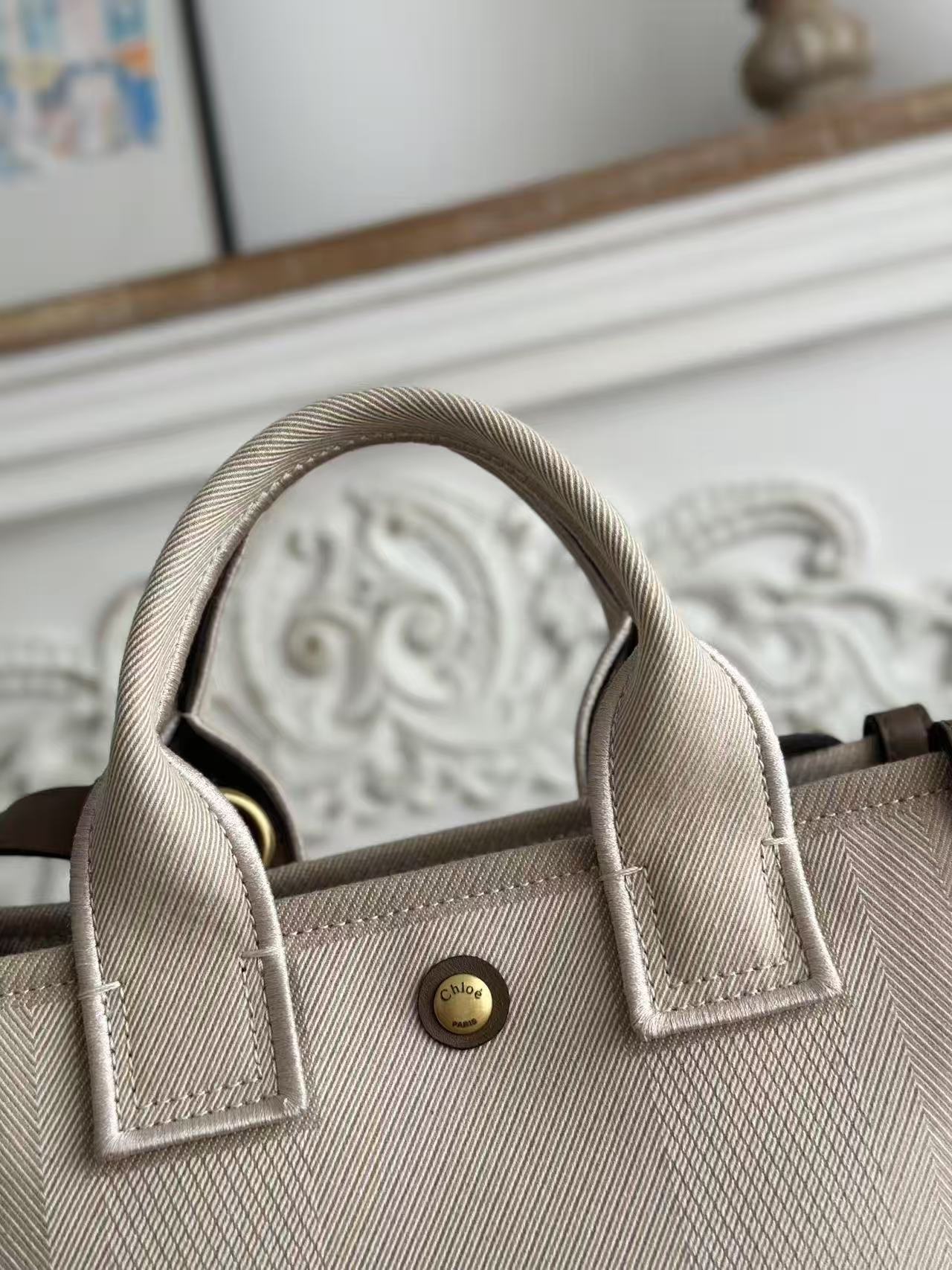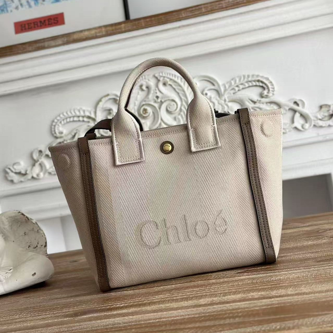 Chloé Carry Tote Bag 25cm Beige Cotton