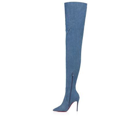 CL Kate Botta Alta Loubijeans 100 Mm Boots Denim Louboutin Embossed