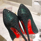 CL Kate Strass Degrade Pumps 100mm Suede Green