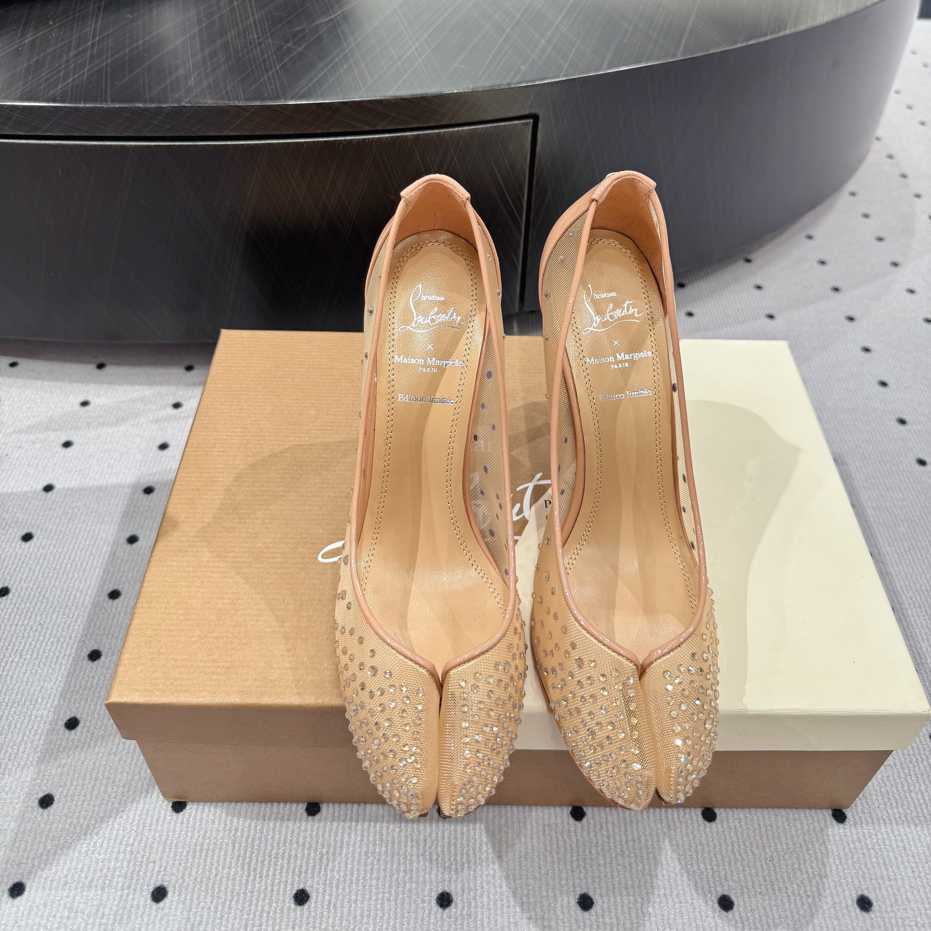 CL x Margiela 25 Diamond Pumps Beige Fabric Lace Swarovski 296040