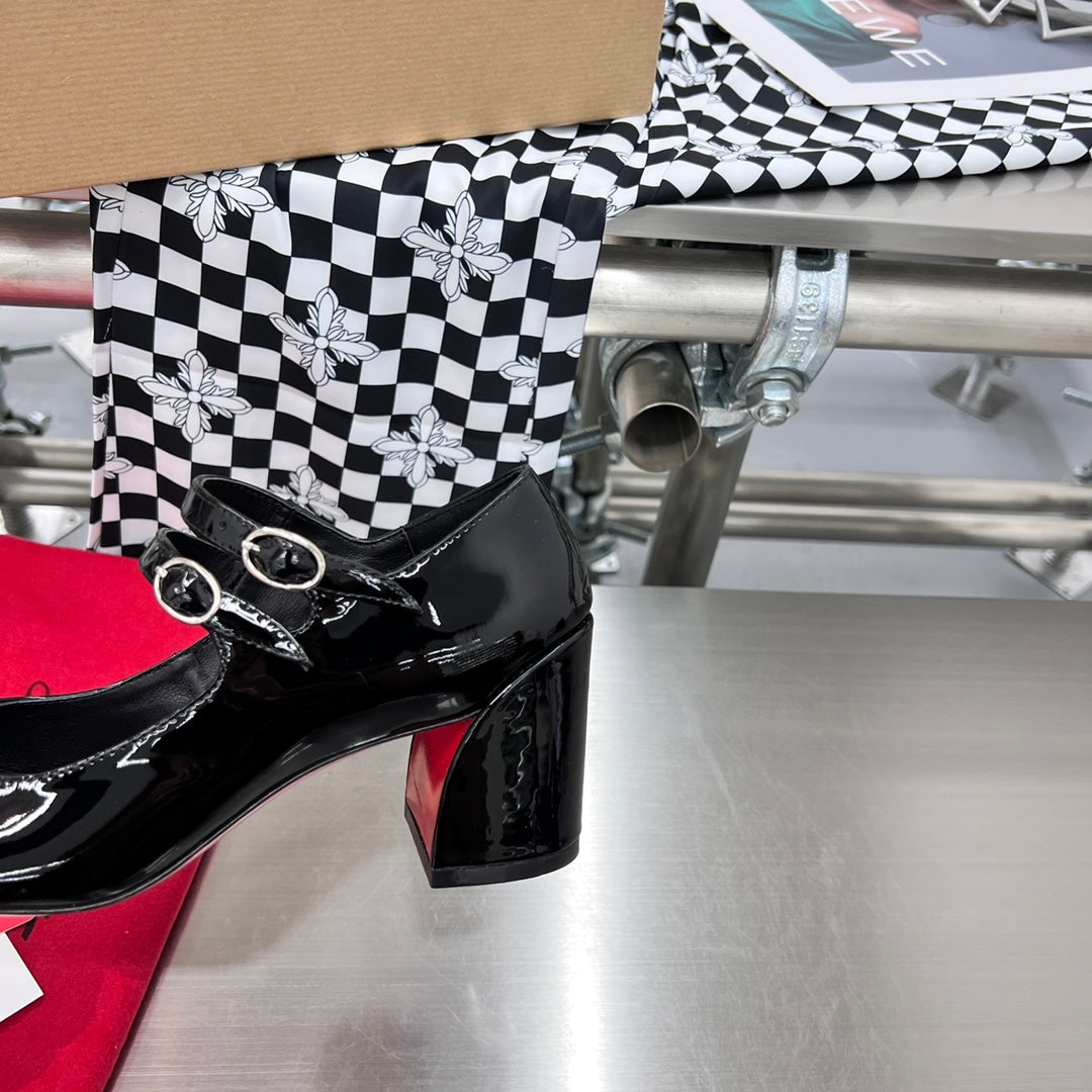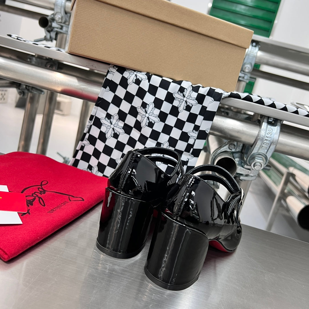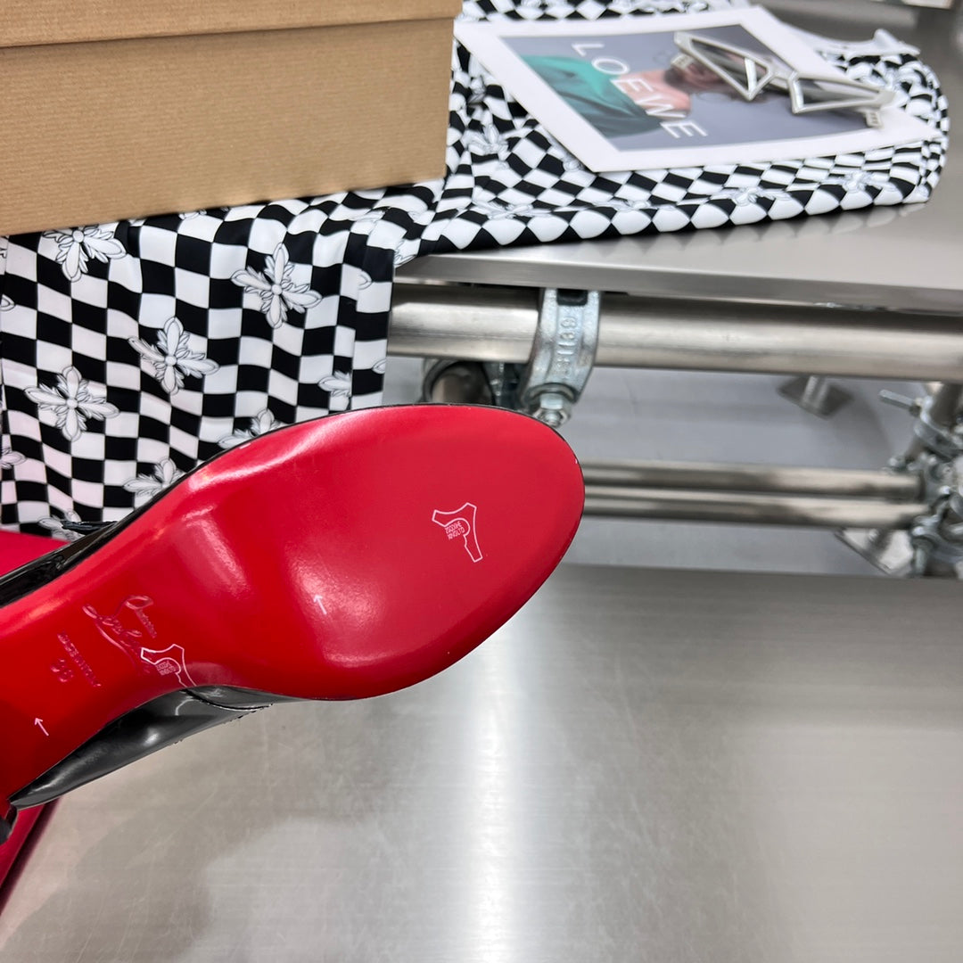 CL Soula Kate Pumps Crystal Sole Patent Leather Black Loubi