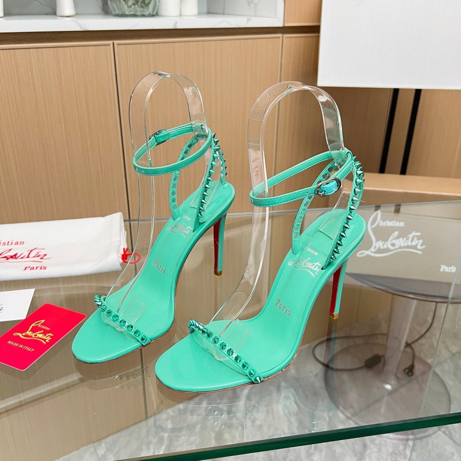 CL So Me 105 mm Strappy Sandal Grass Green Imported Rivets with Sheepskin 251020