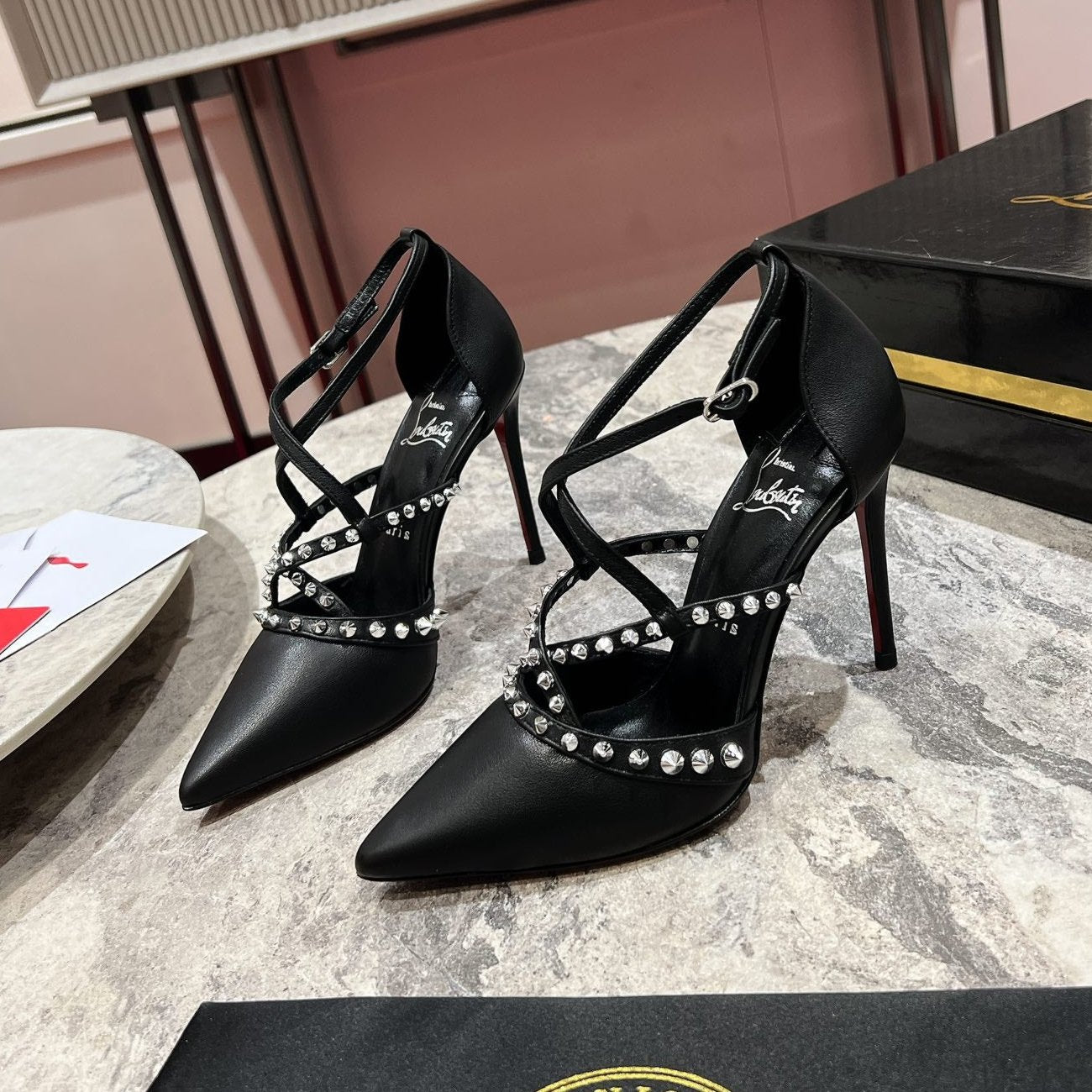 CL Condora Riviera Spikes 100 Mm Pumps Nappa Leather And Silver Spikes Black
