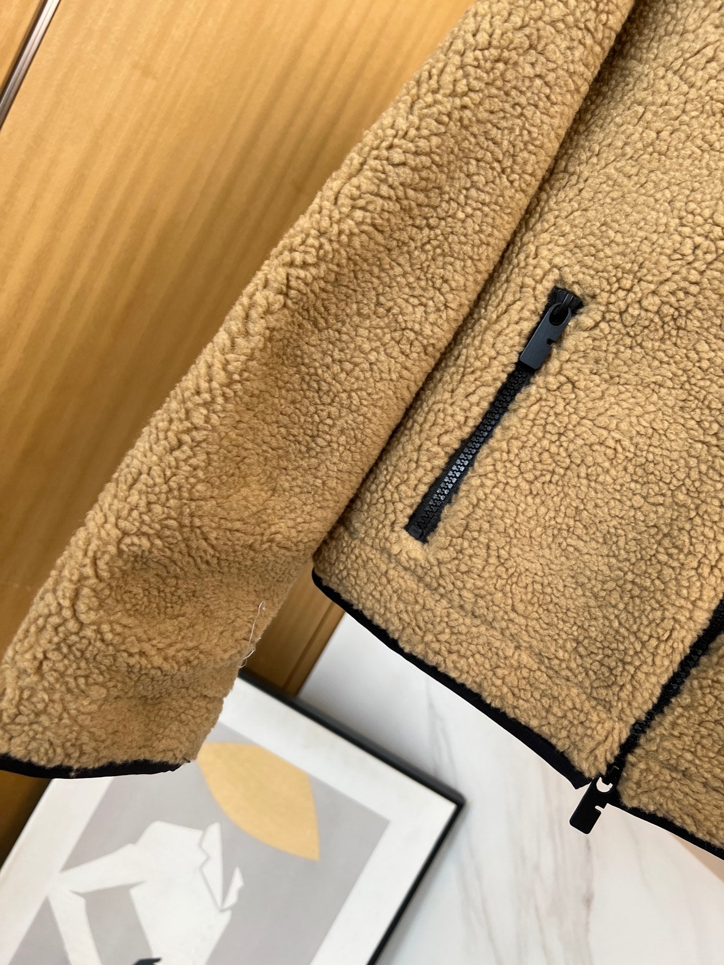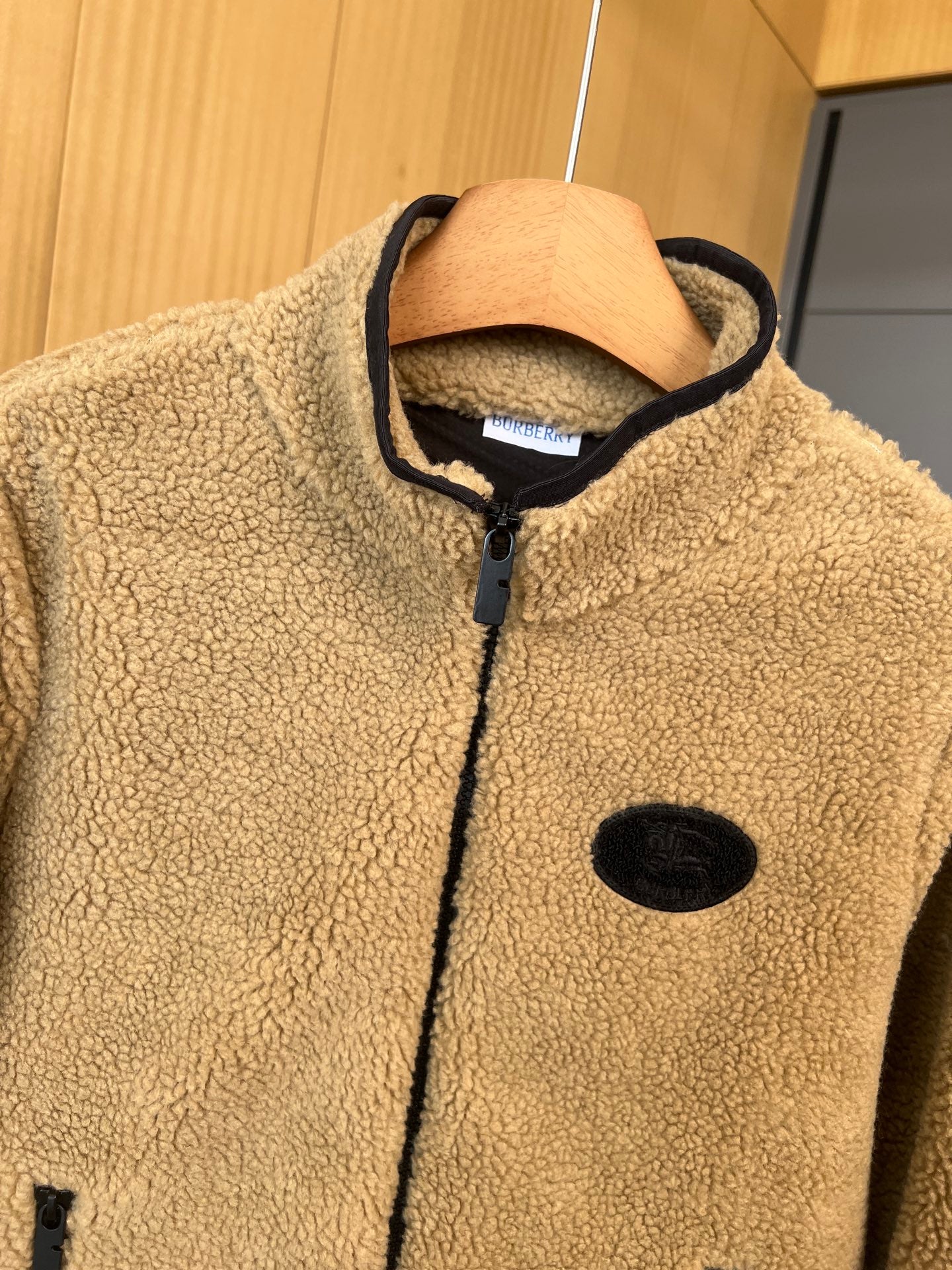 Burberry 25 Short Jacket Camel mix Black Shearling Fabric