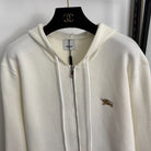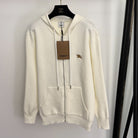Burberry 25 Zipper-Up Hooded Knit Cardigan Off-white Wool