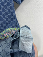 GG Blue Monogram Crystal Embellished Mini Dress