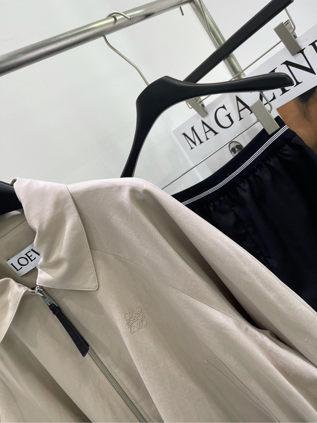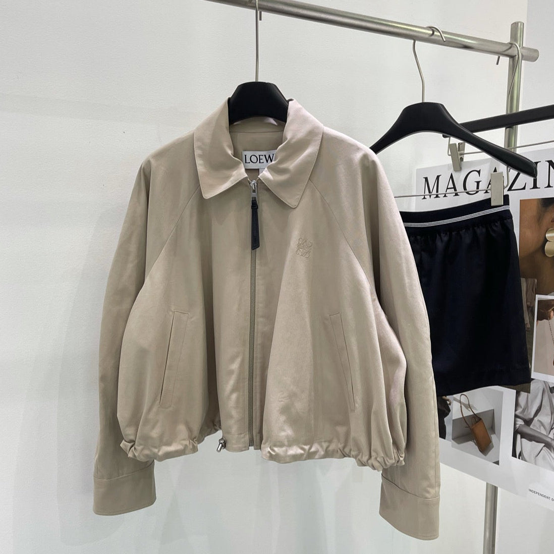 Loewe 2025 Zippered Short Trench Coat Light Khaki Cotton 217881