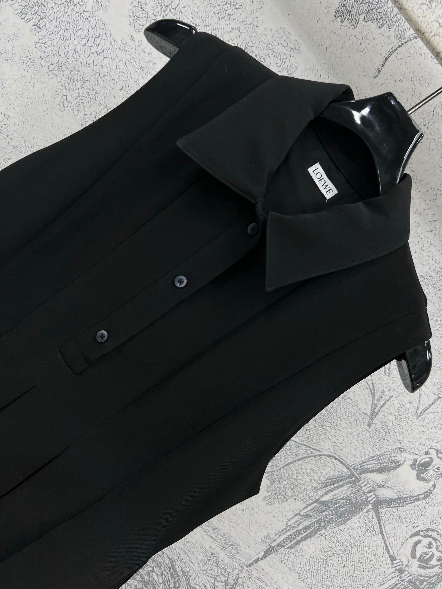 Loewe 25 Sleeveless Pleated Shirt Black Polyester Fiber