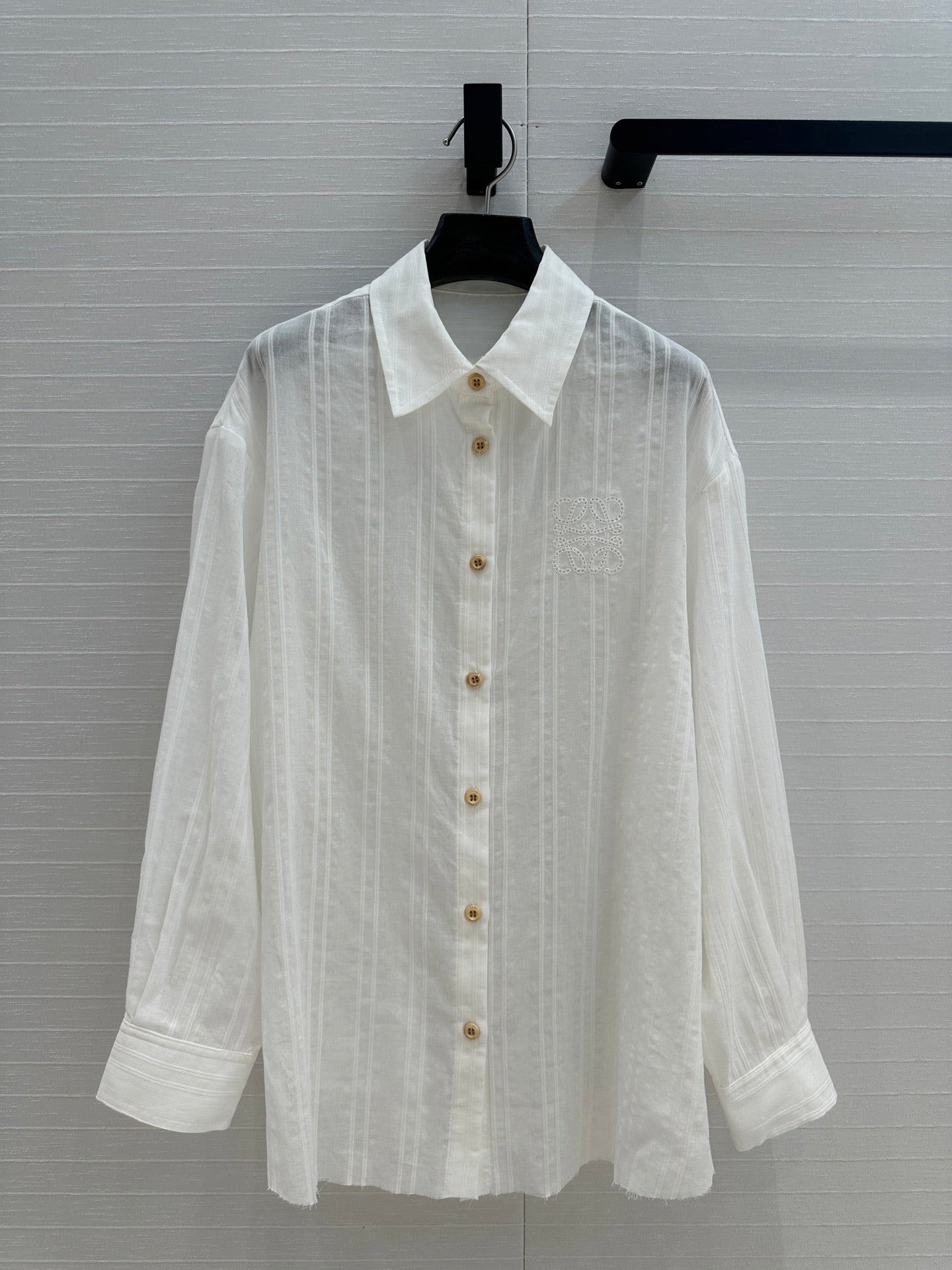 Loewe Hollow Logo Embroidered Striped Shirt White Cotton