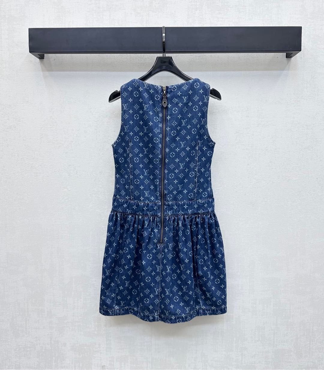 LV DENIM SLEEVELESS ROUND-NECK DENIM BLAZER DRESS 274793