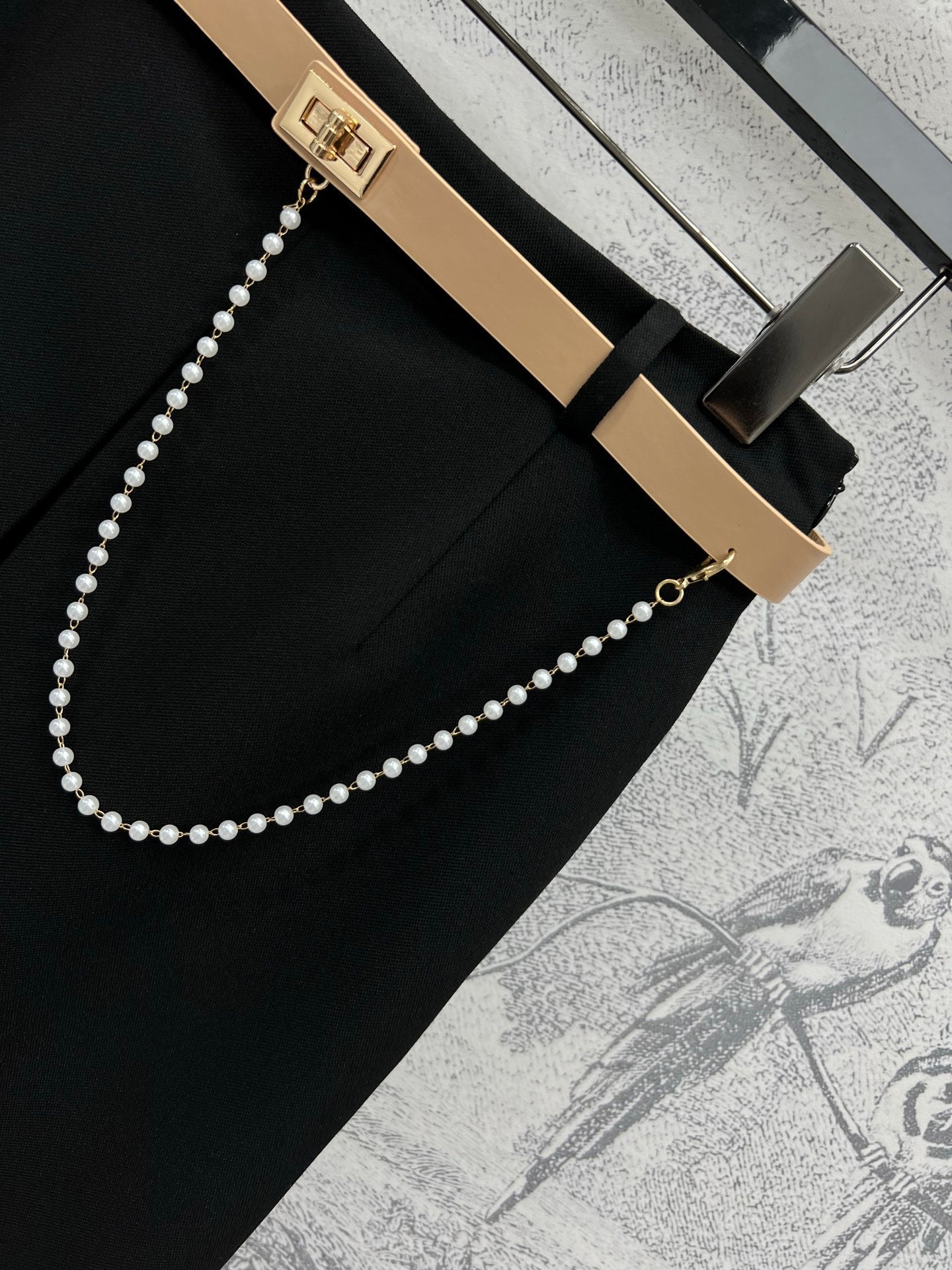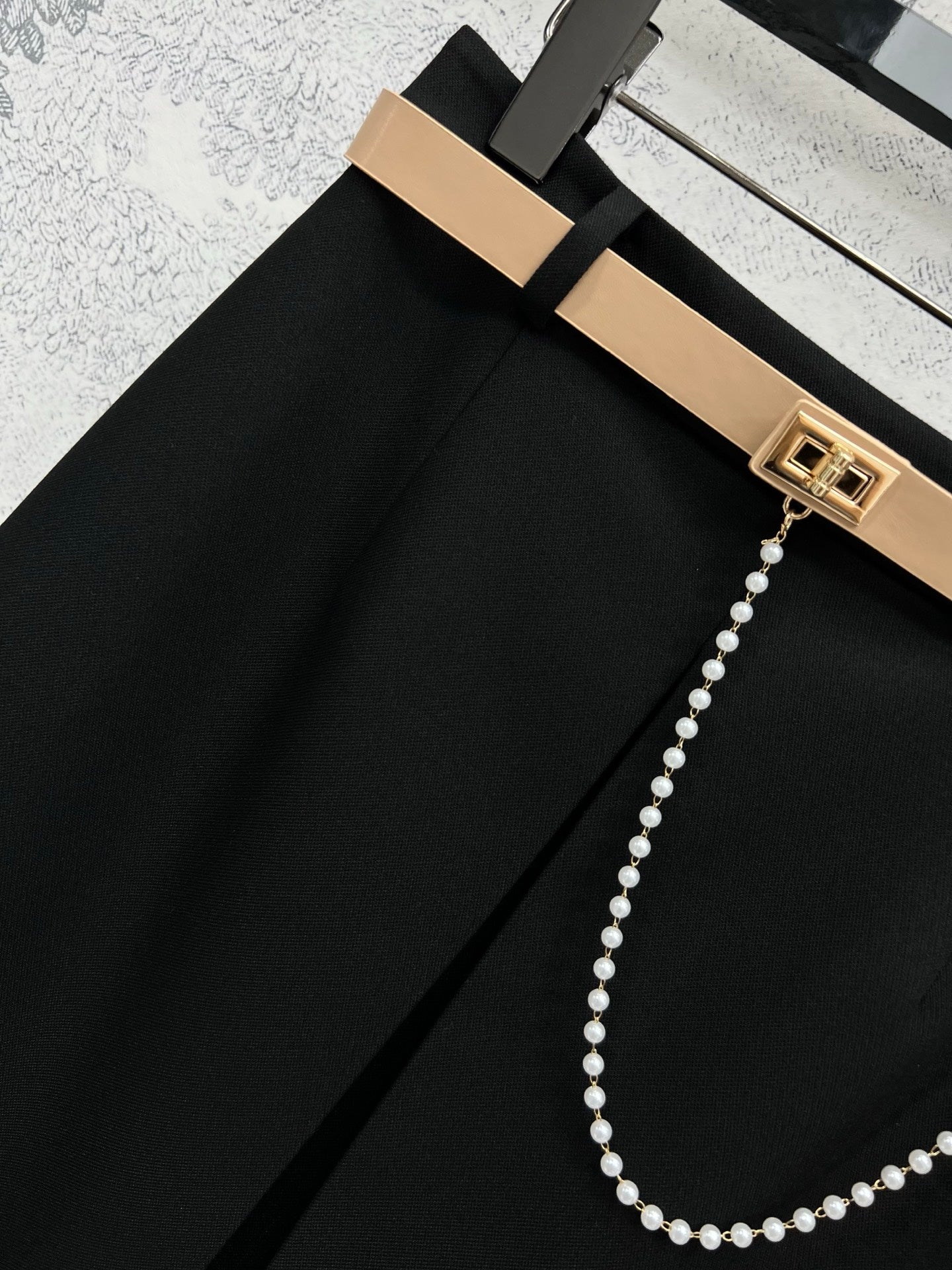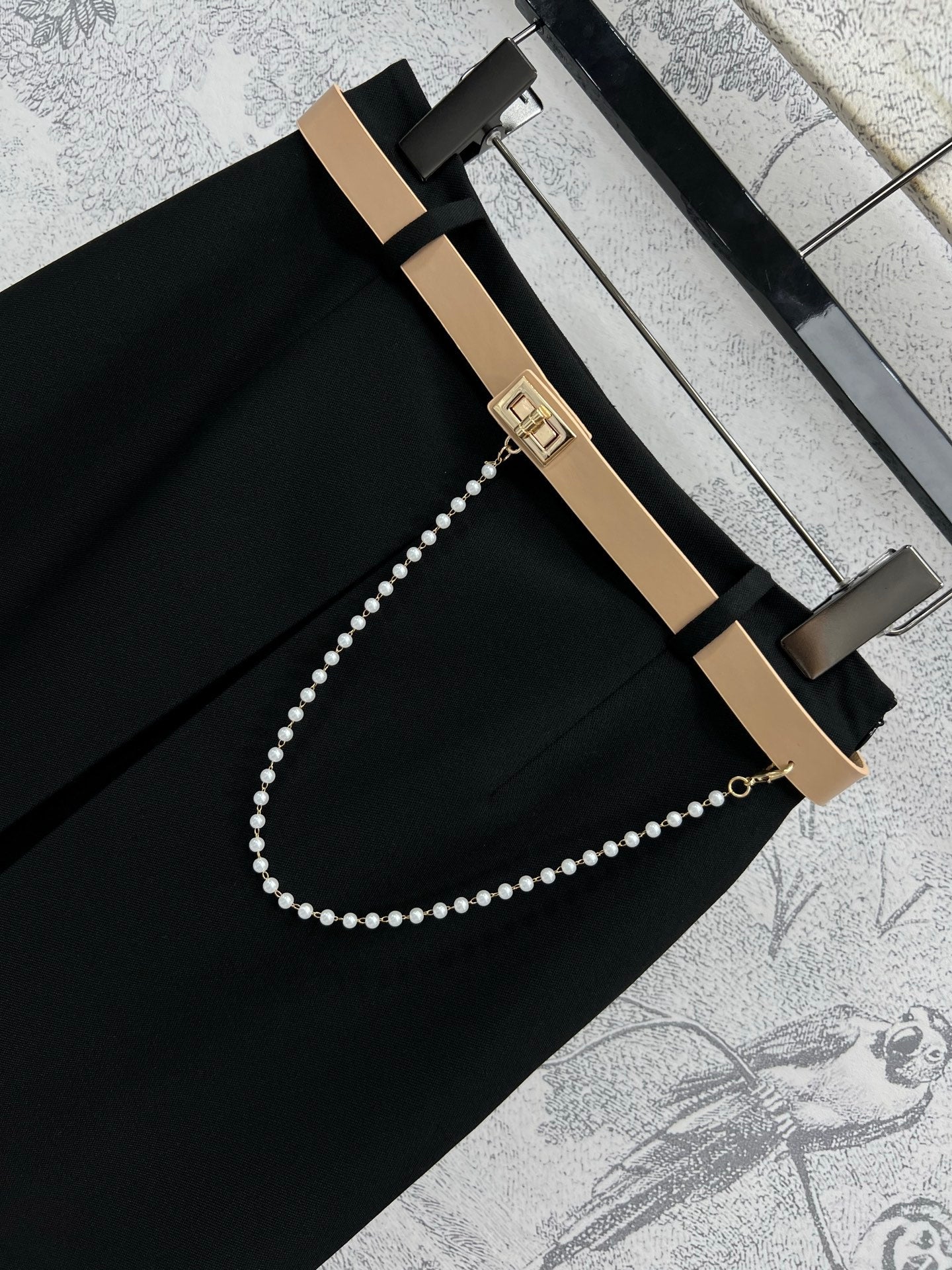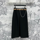 CD 25 A-line Pleated Long Skirt With Belt And Zipper Black Polyester Cotton