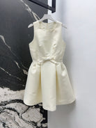 CD 25 Bow Sleeveless Mini Dress White Satin