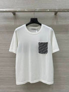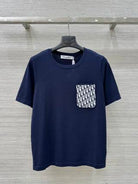 CD 25 Knitted Short-sleeved Top Blue and White Cotton