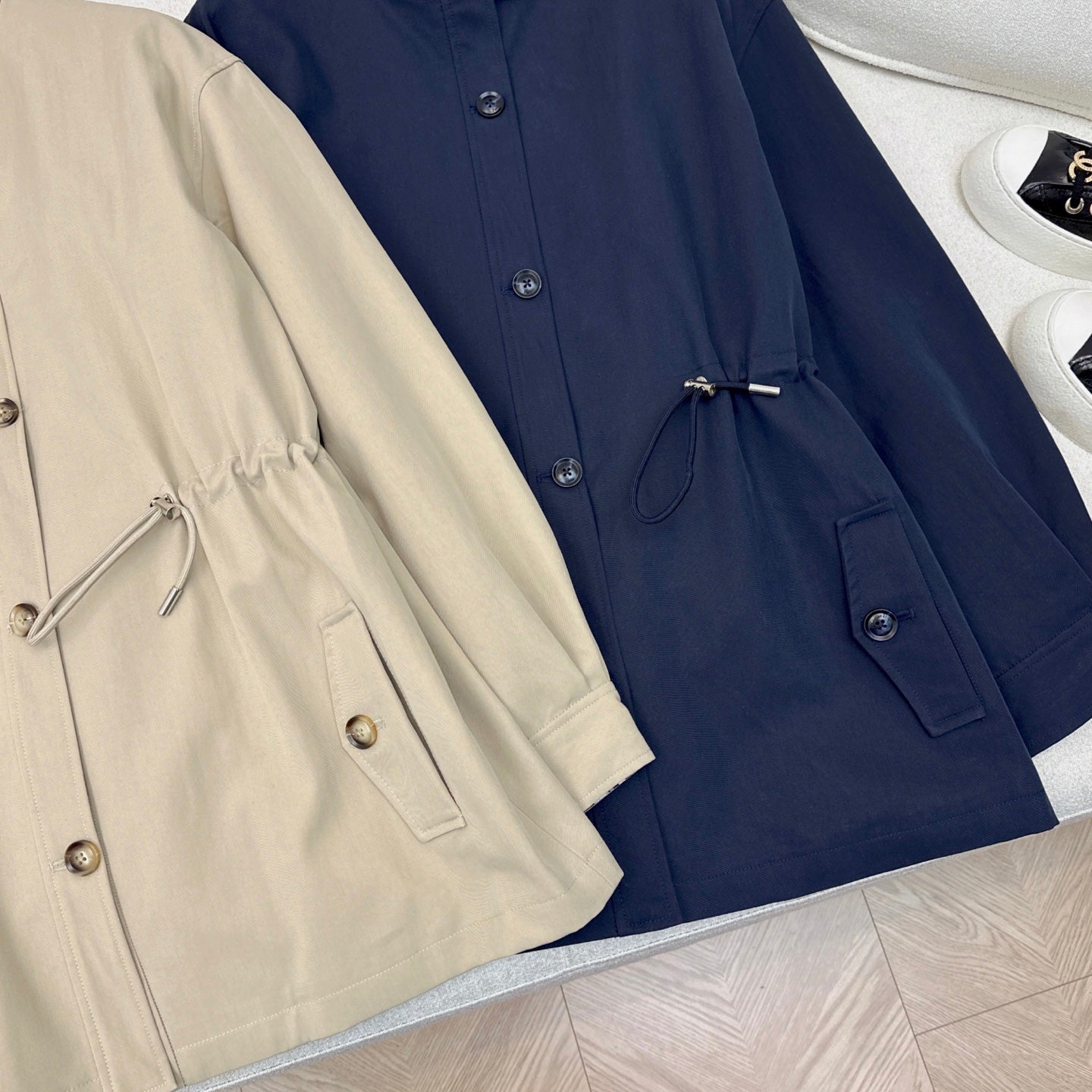 CD 25 Mid-length Trench Coat Blue and Beige Cotton Polyester 593395