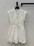 CD 25 Ruffle Sleeve Dress White Cotton