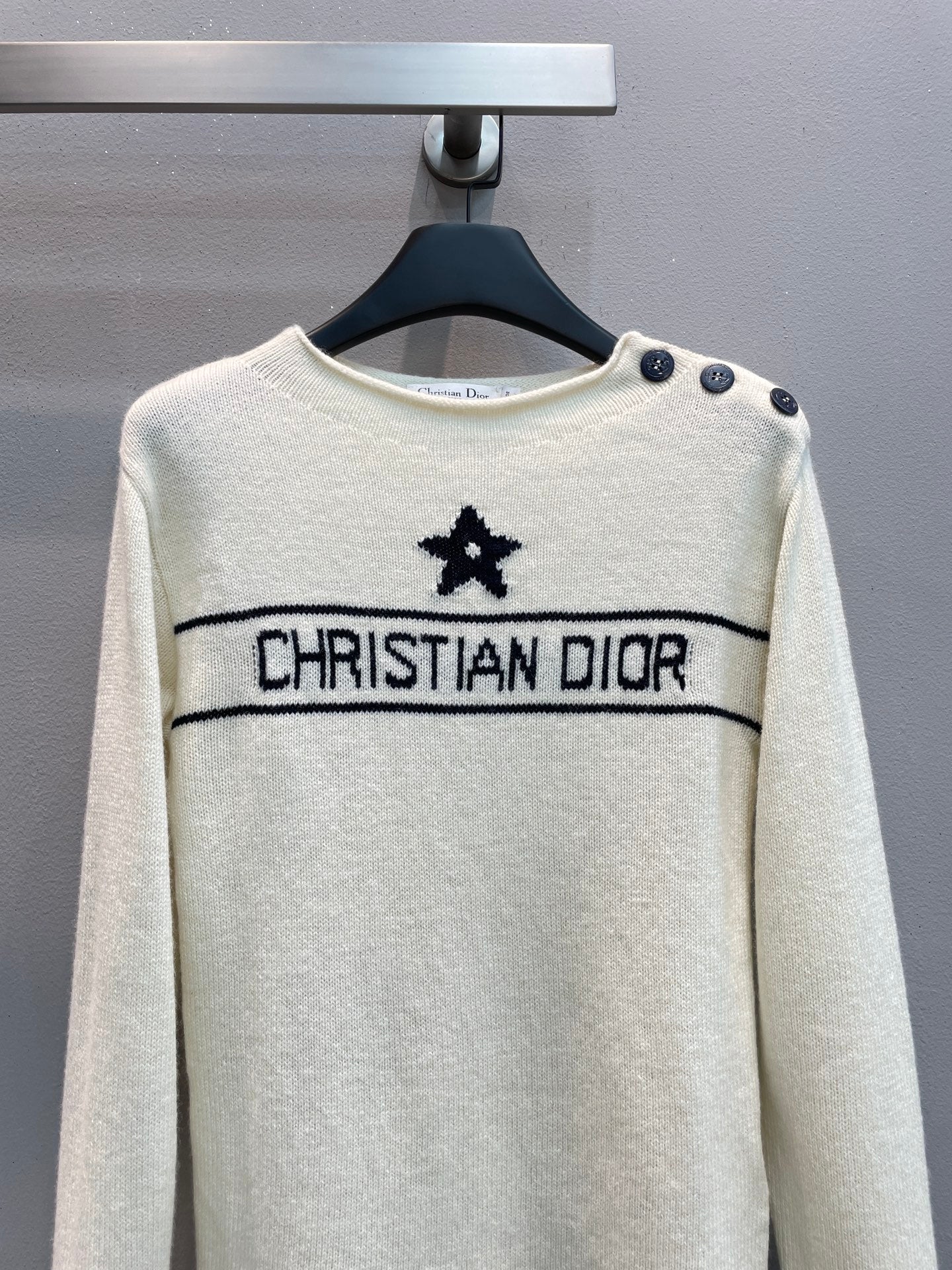 CD 25 Sweater White With Buttons On The Shoulder Cashmere