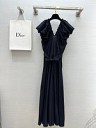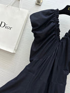 CD 25 V-neck Puff Sleeve Dress black Satin Silk