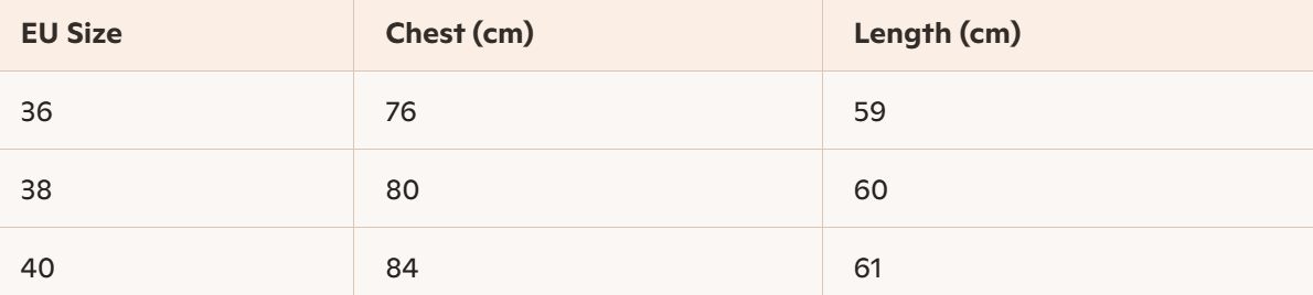 - For more information, please see the size guide below