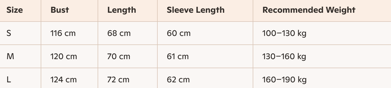 - For more information, please see the size guide below