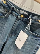 Celine Back Pocket Embroidery Cover Straight Jeans Blue Cotton 209716