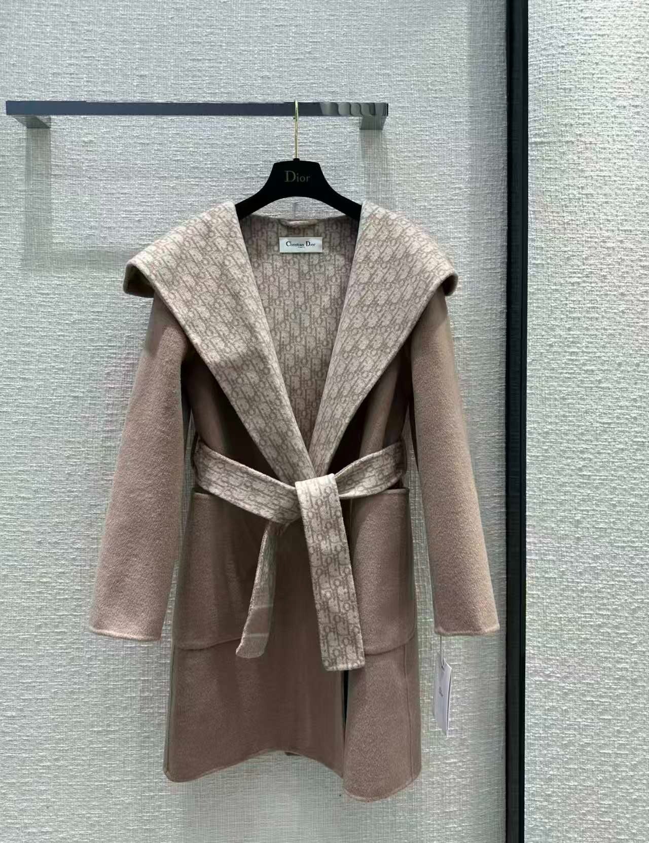 DIOR HOODED COAT IN DARK BEIGE WOOL