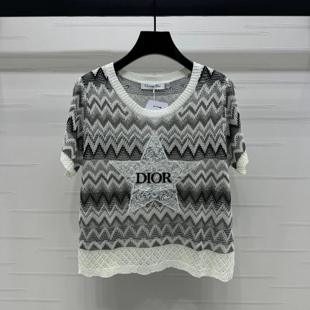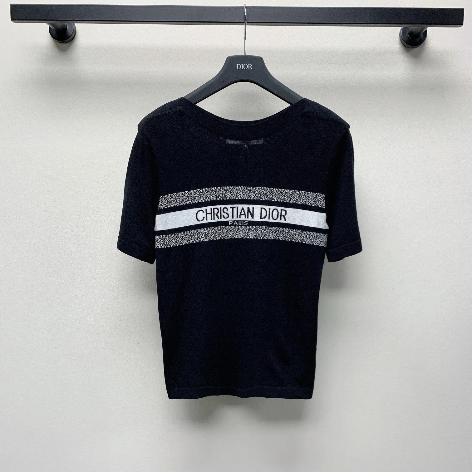 DIOR V-NECK KNITTED SHORT-SLEEVE T-SHIRT WHITE 274934