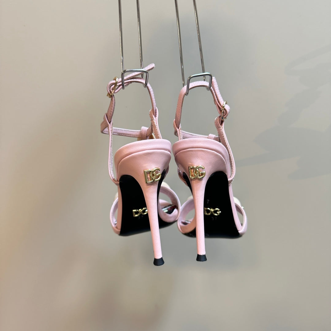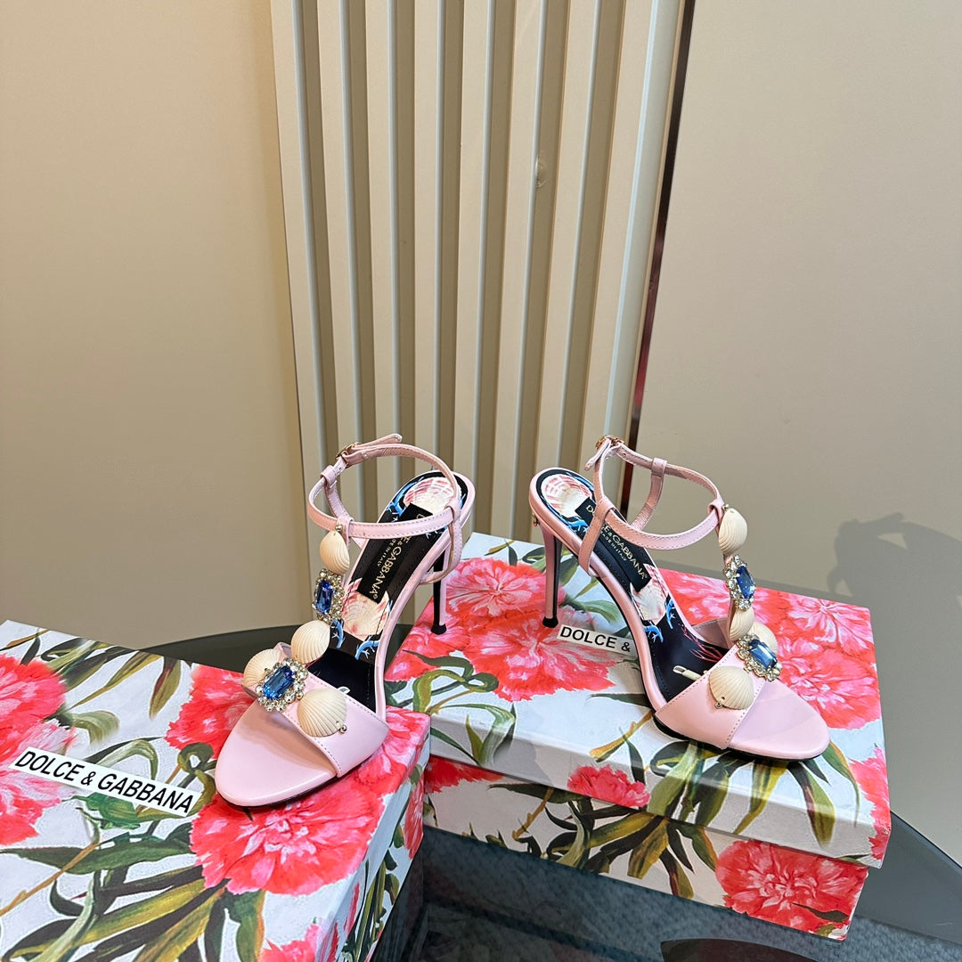 DC 24 Shell Rhinestone High Heel Sandals Pink Cowhide & Sheepskin 946157