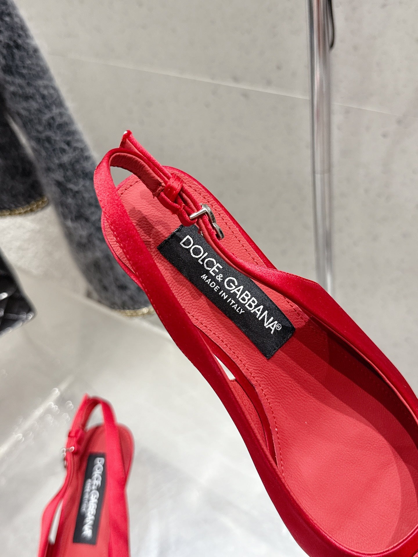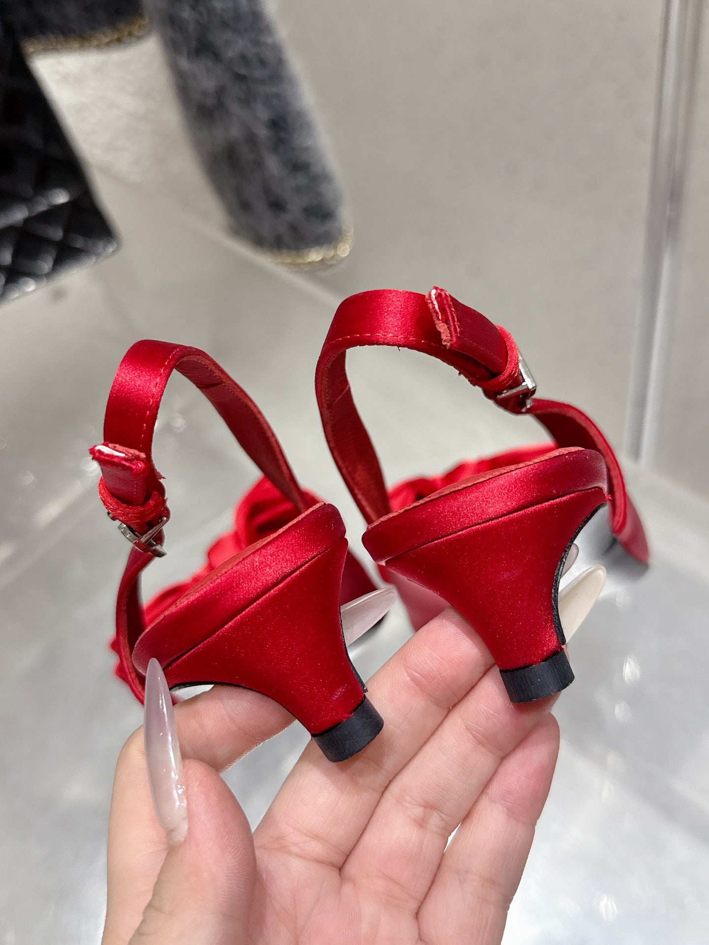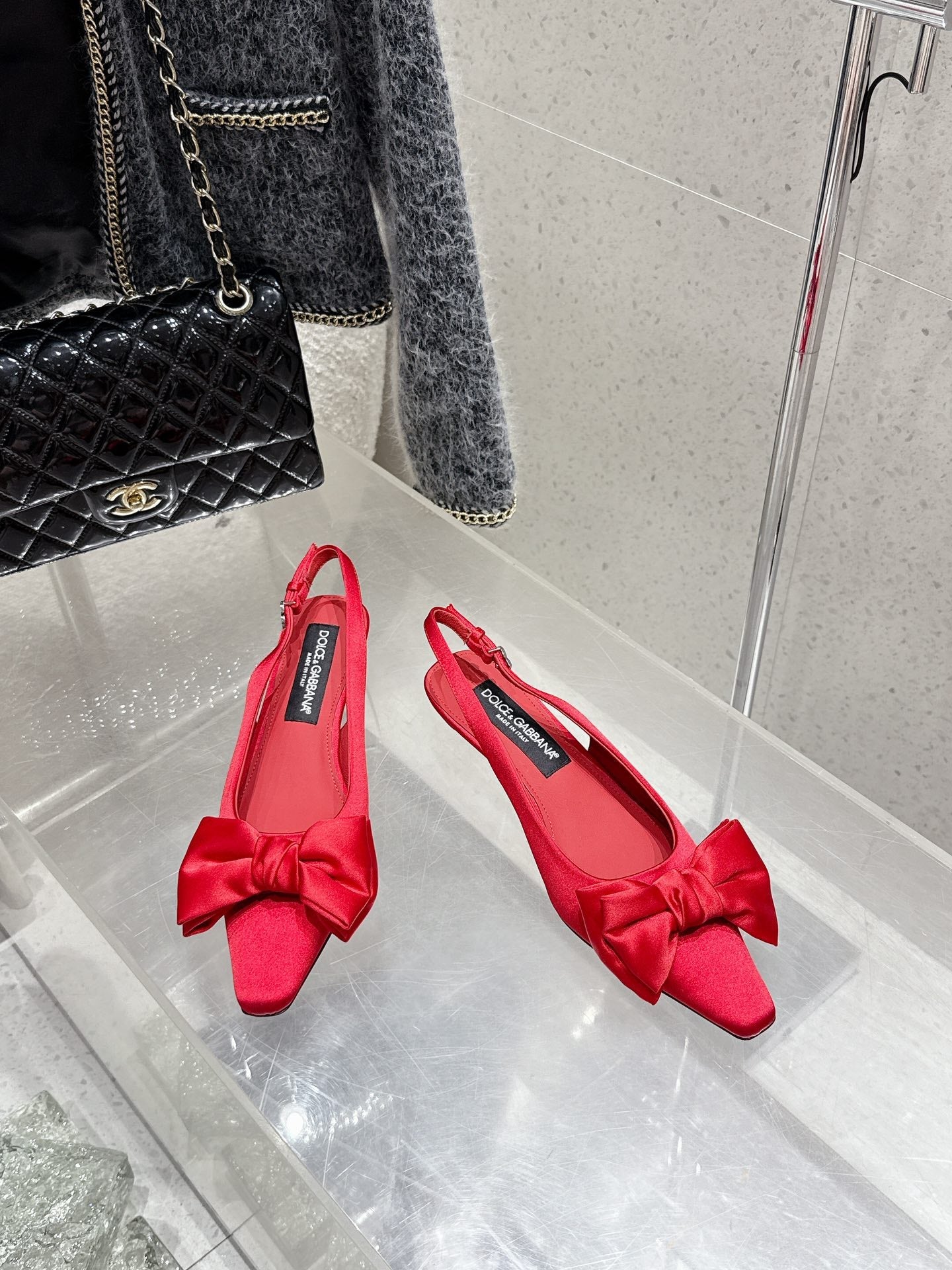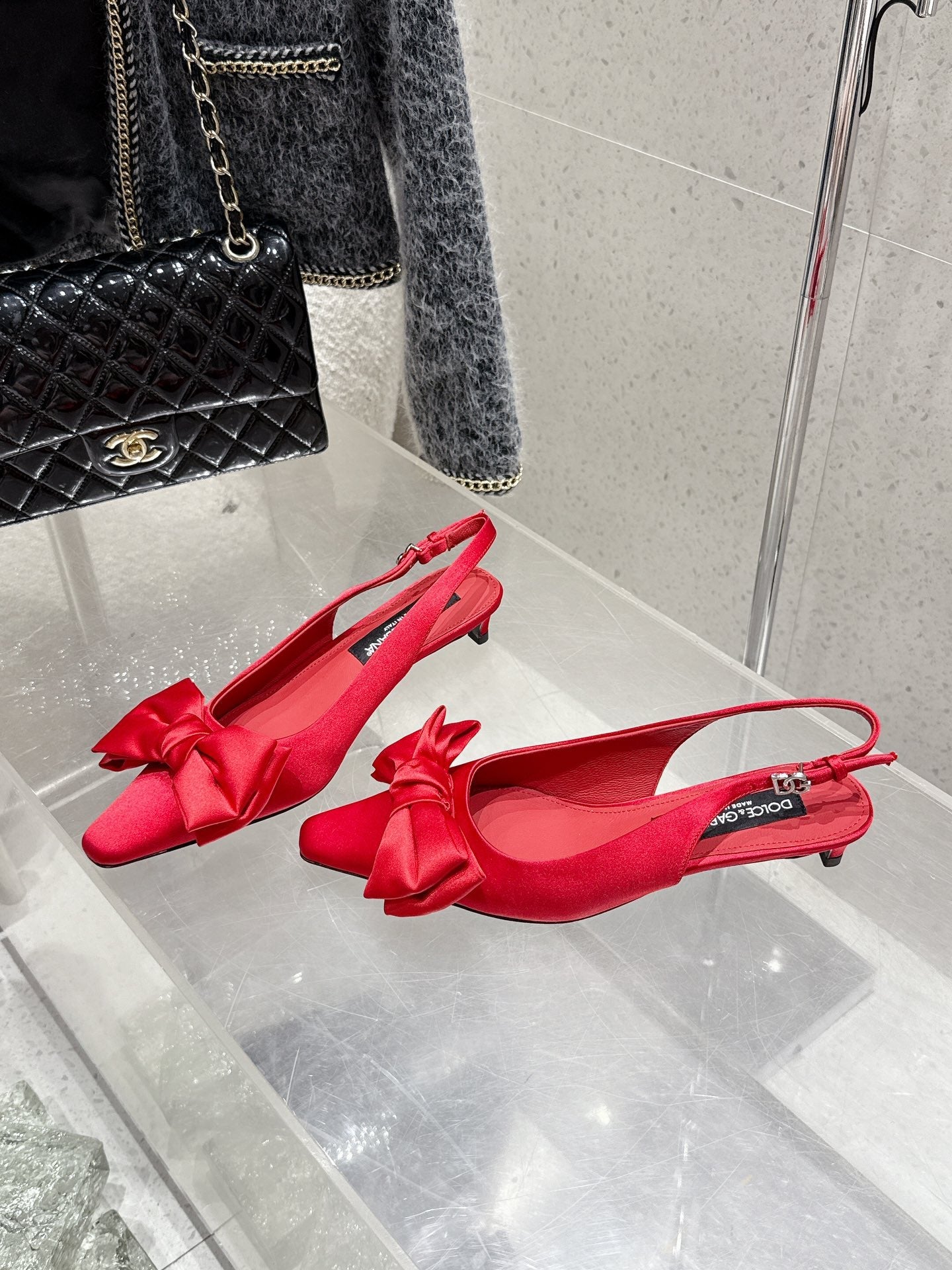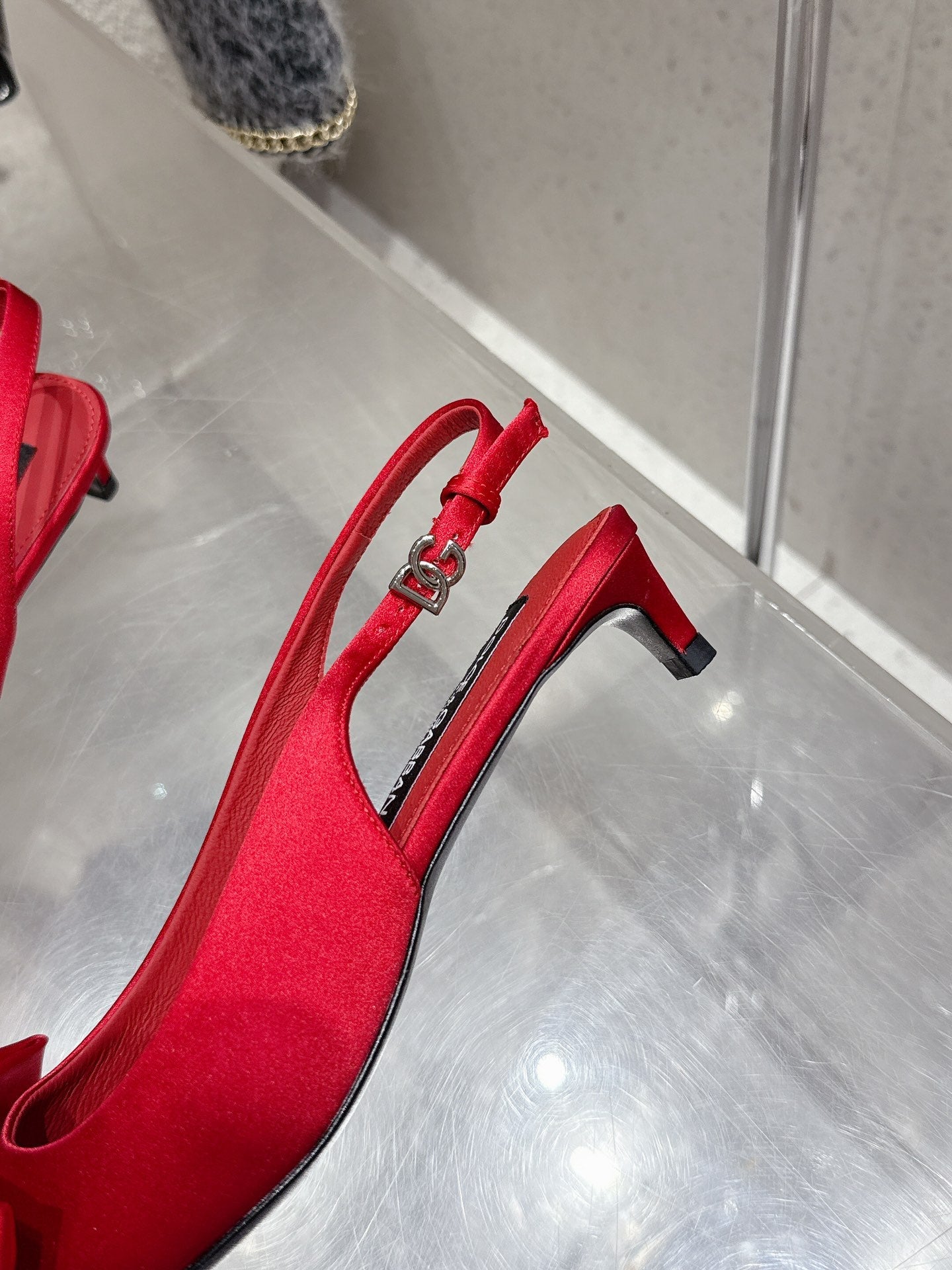 DC 25 Bow Slingback Pumps 30mm Red Satin & Sheepskin 359510