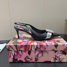 DC 25 Square Diamond Buckle Slingback 65mm Black Cowhide And Sheepskin 381620