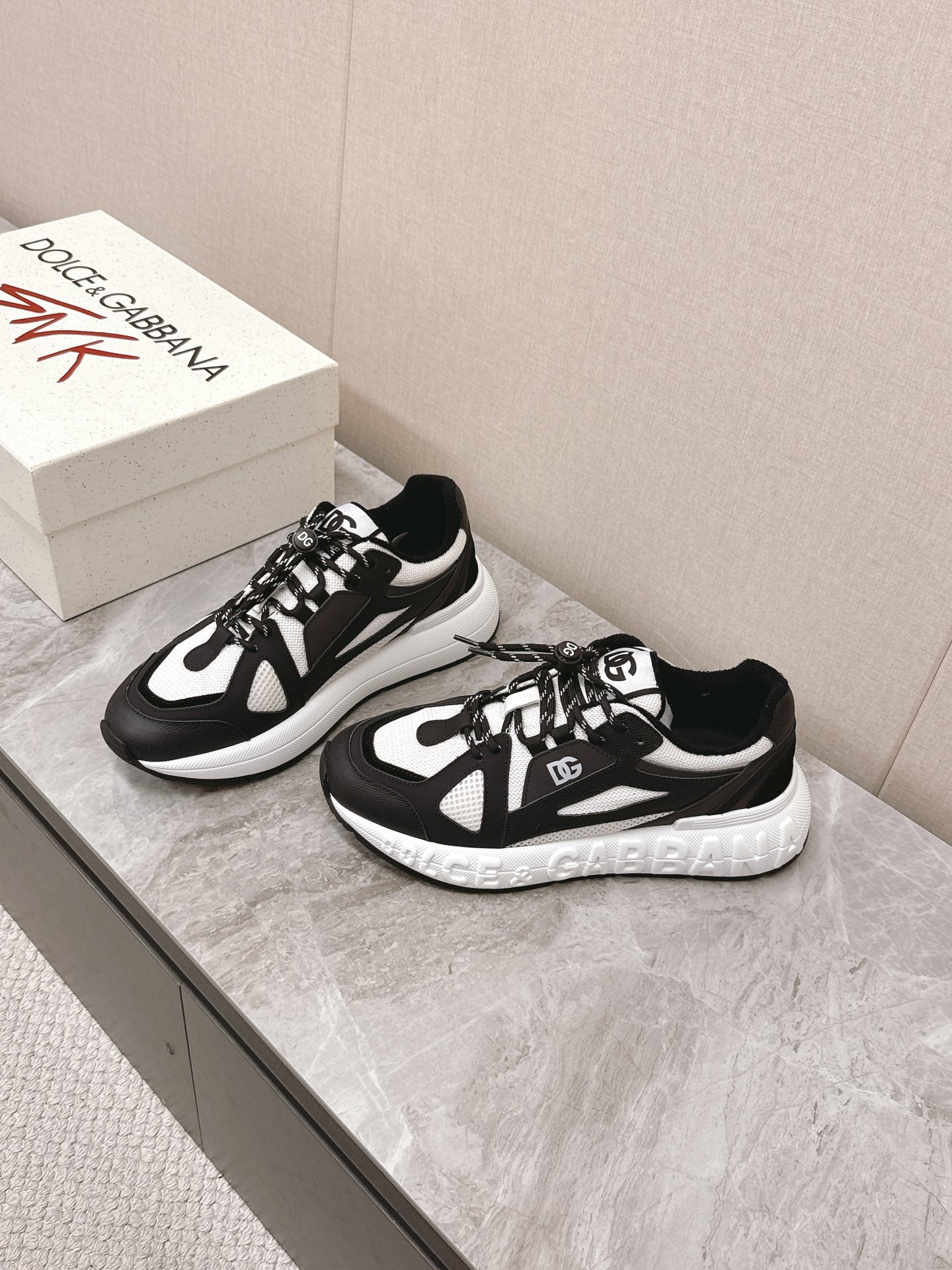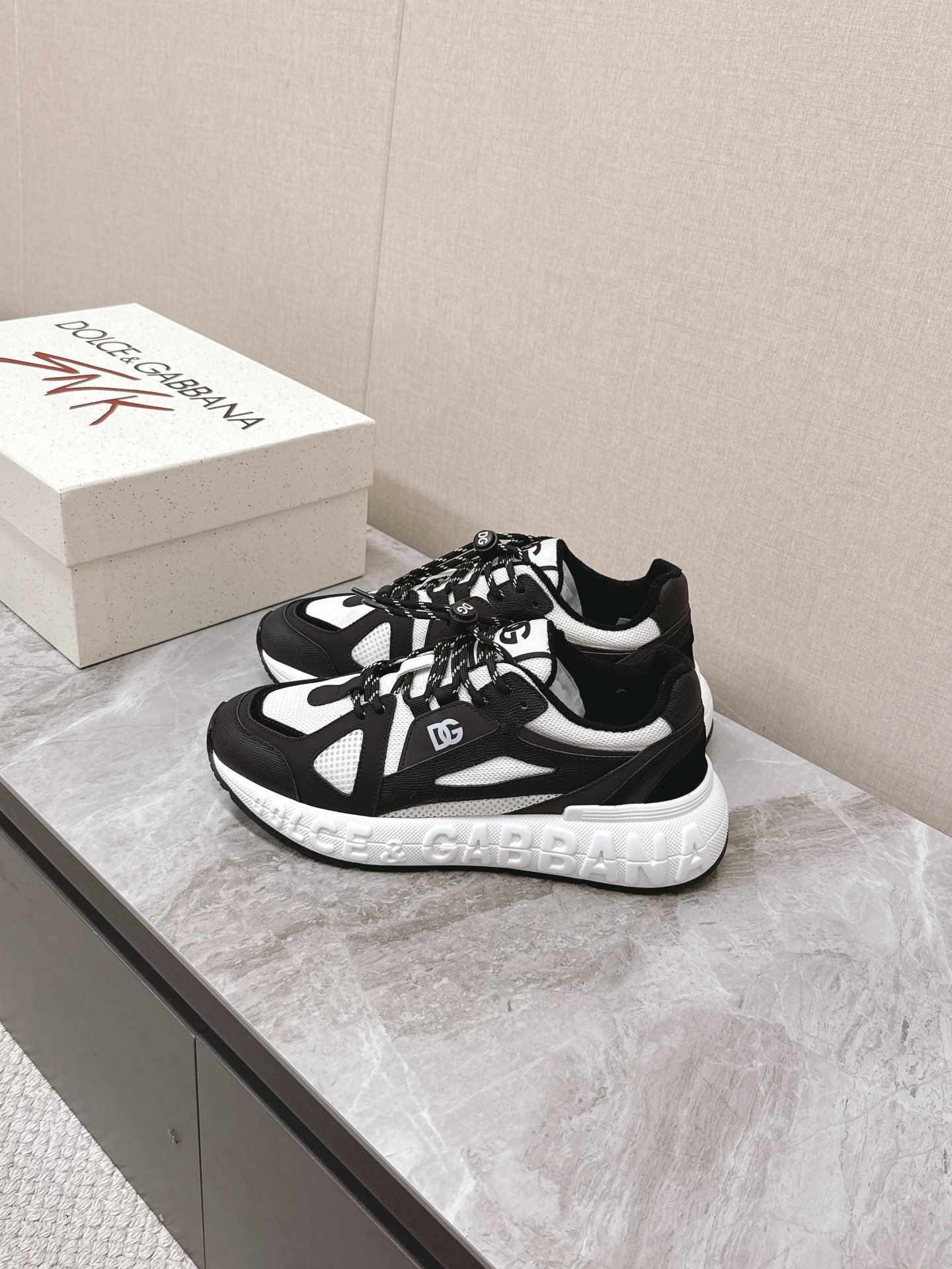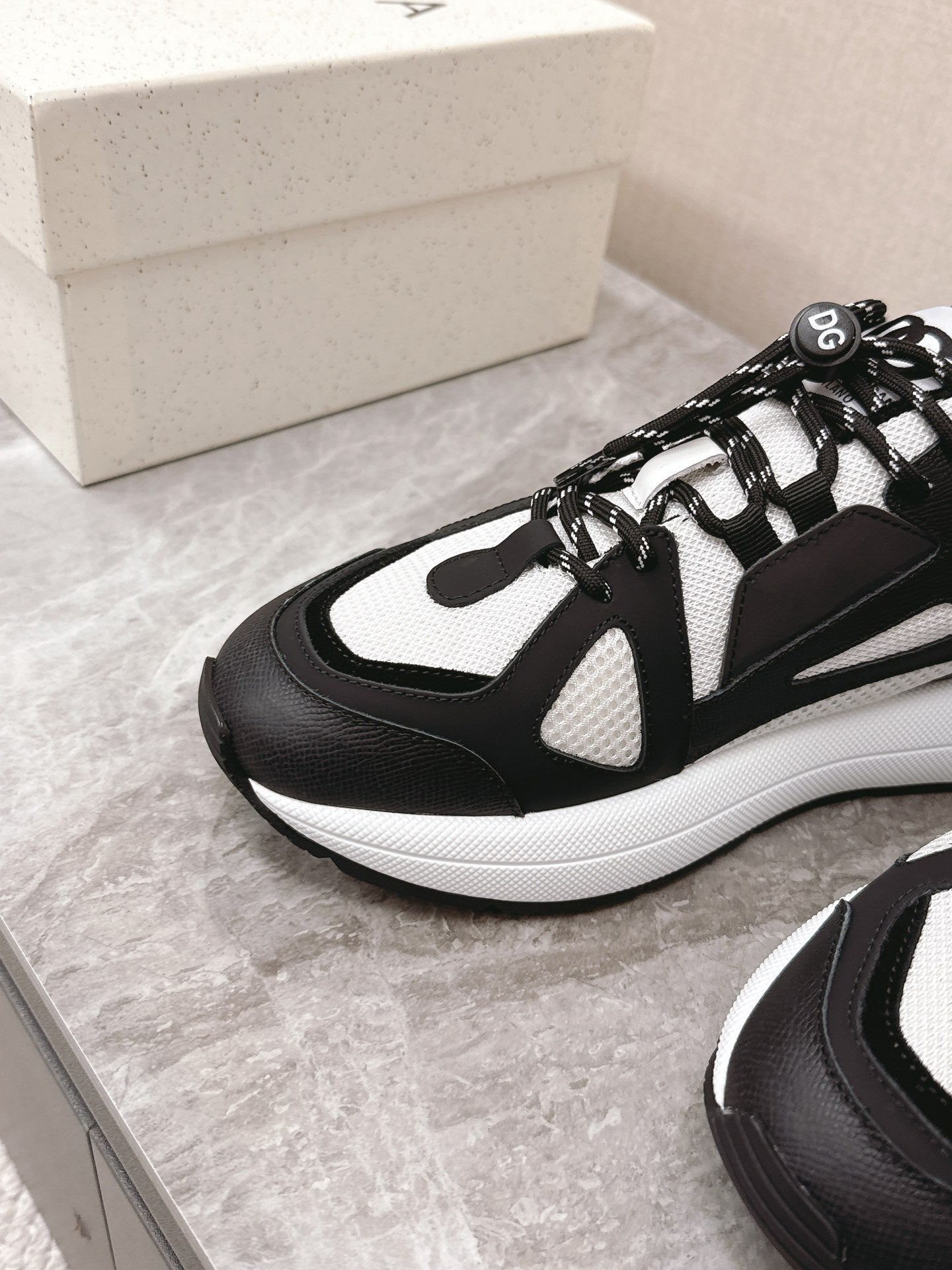 DC Chunky Sneakers White Black Cowhide & Mesh Lining 339126