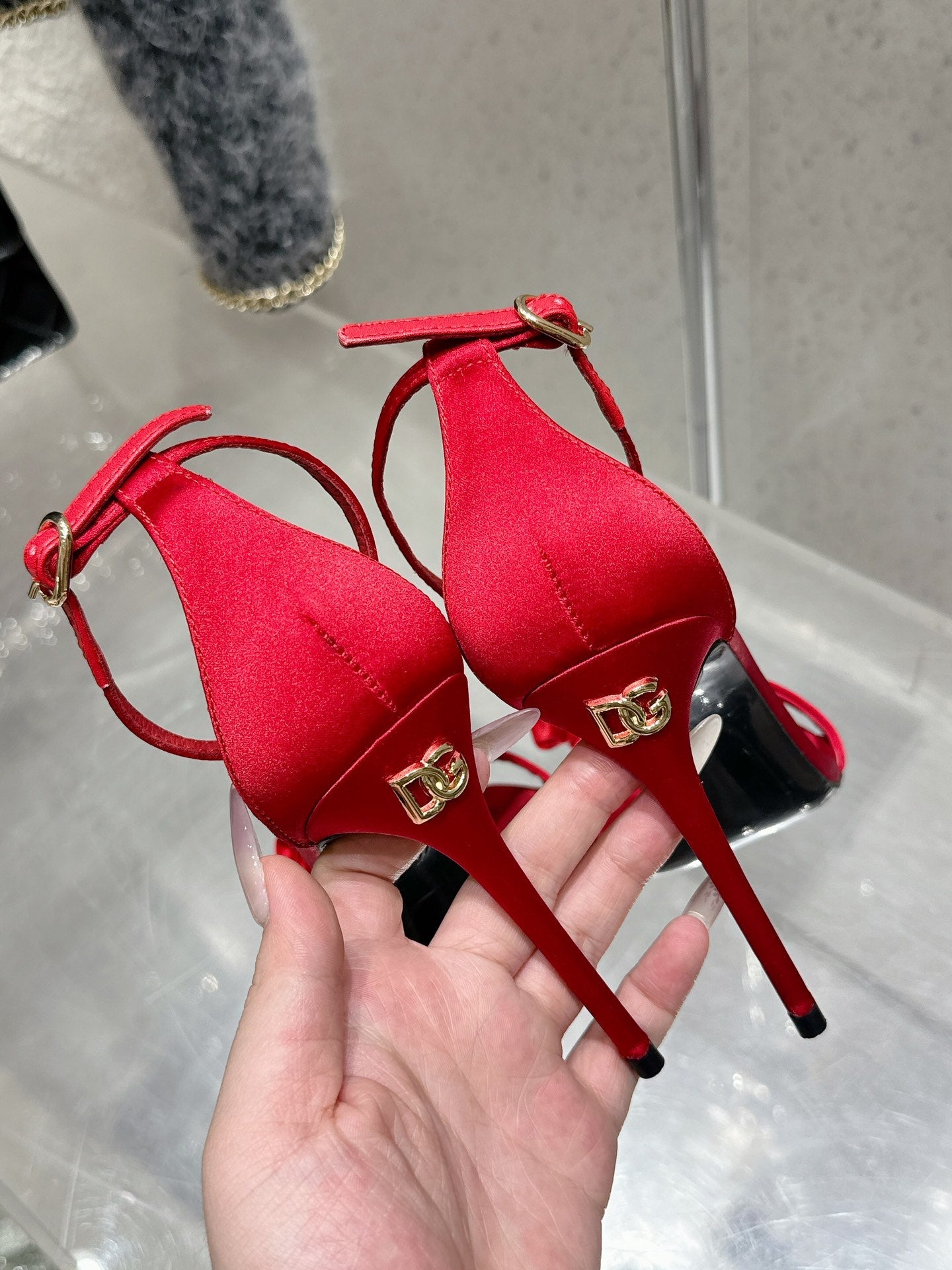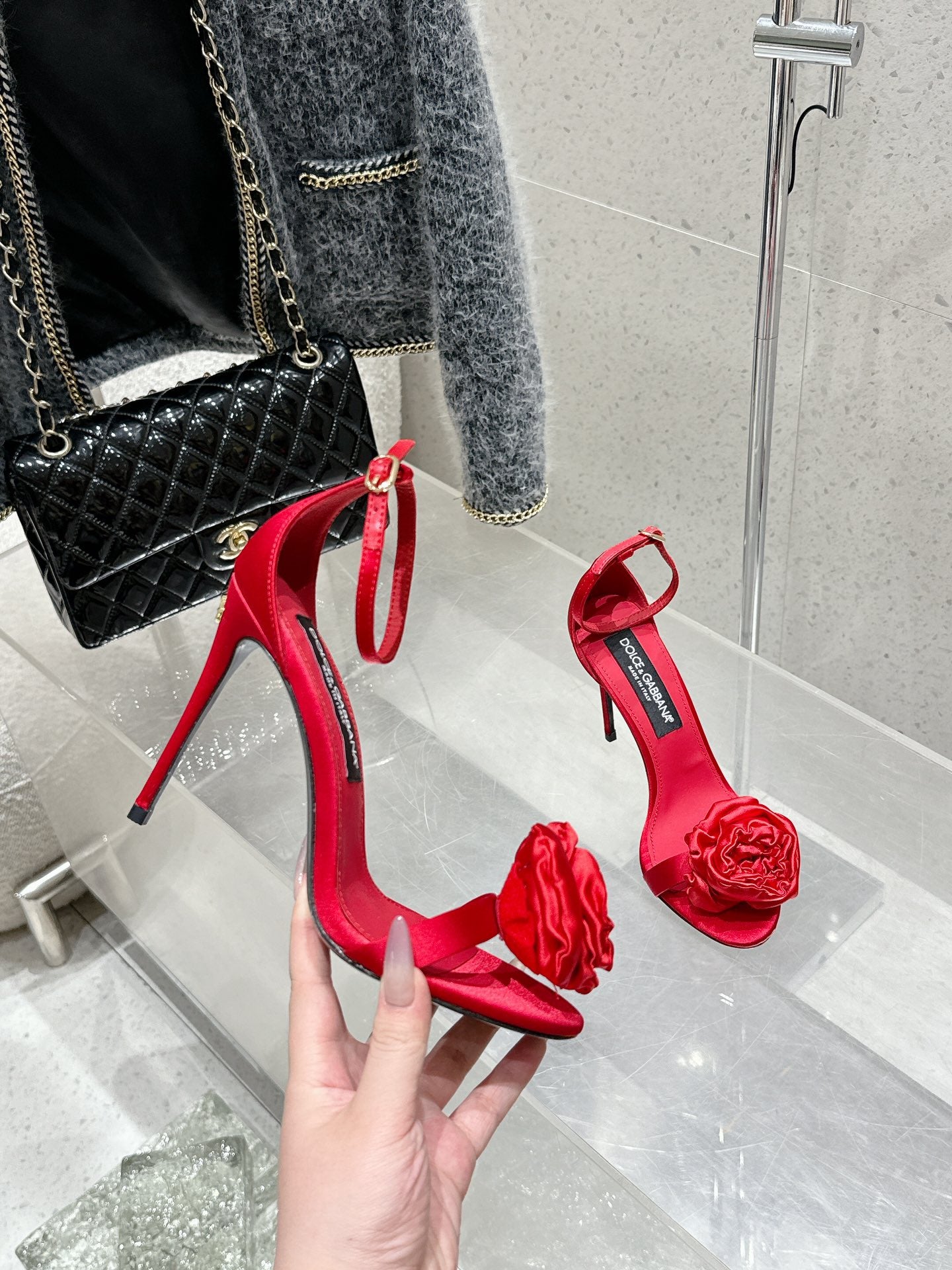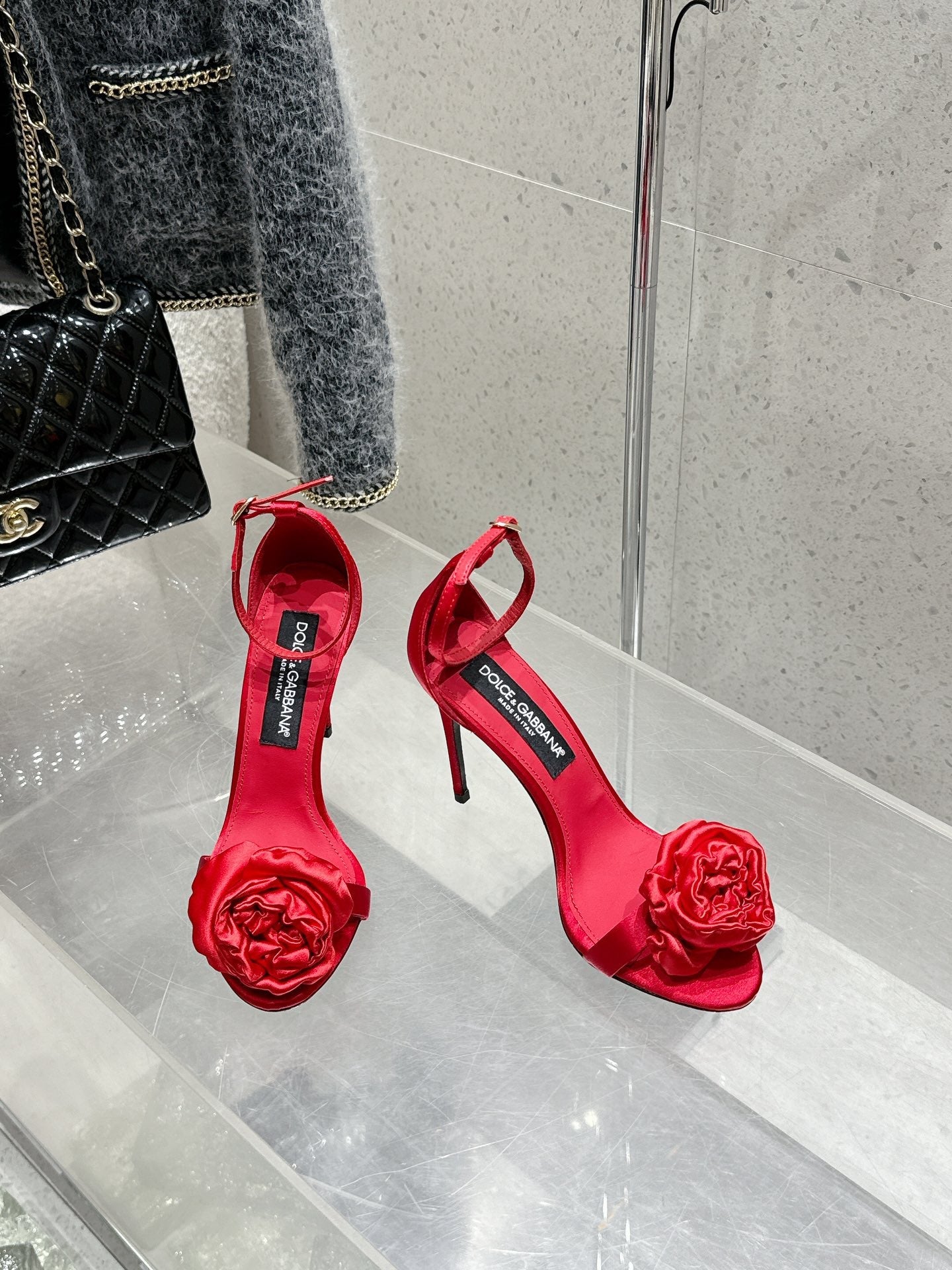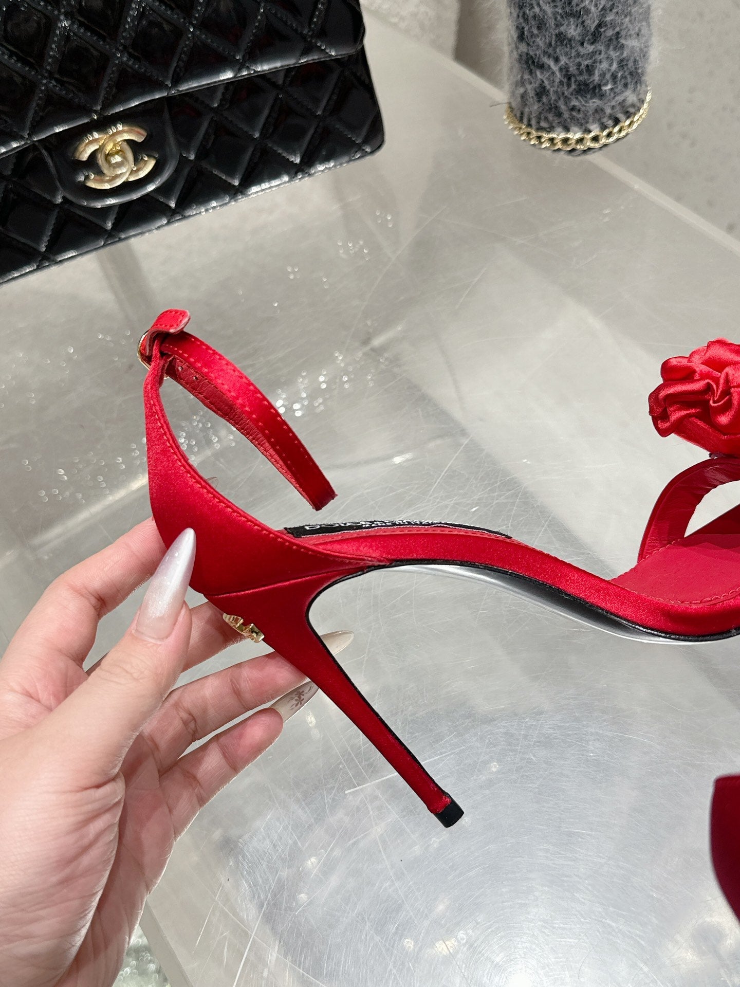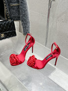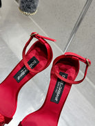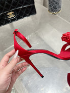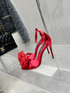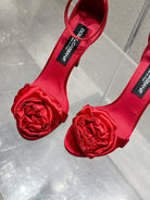 DC Flower High Heel Sandals 105mm Red Satin & Sheepskin 359506